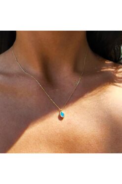 FasekGold Gümüş Kolye – 0.90 CT Turkuaz (Firuze) Taşlı Güverseli Sade Minimal Tasarım Hediyelik Gümüş Kolye