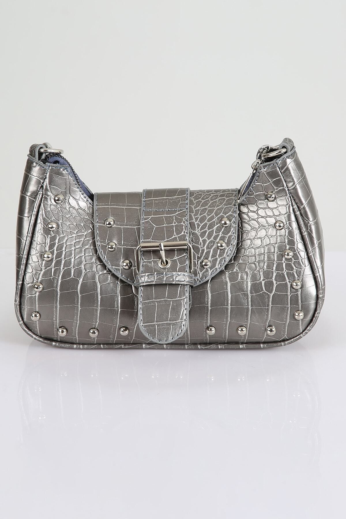 FASOLDY Bony Zımbalı Timsah Desenli Gri Kol Çantası