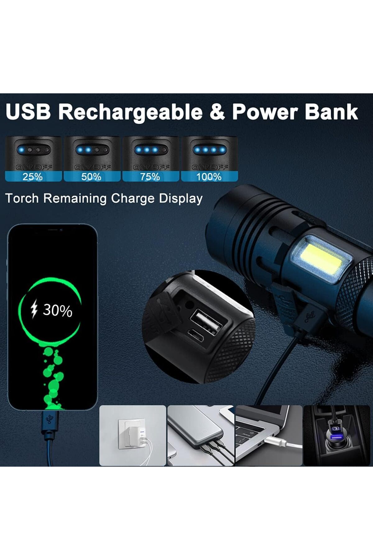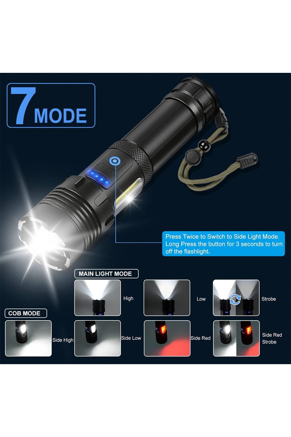 FAVBOX 5000 Lümen Güçlü Led El Feneri Yüksek Güç Işık Şarj Edilebilir Taktik El Feneri Kamp Hasuba Hs-45