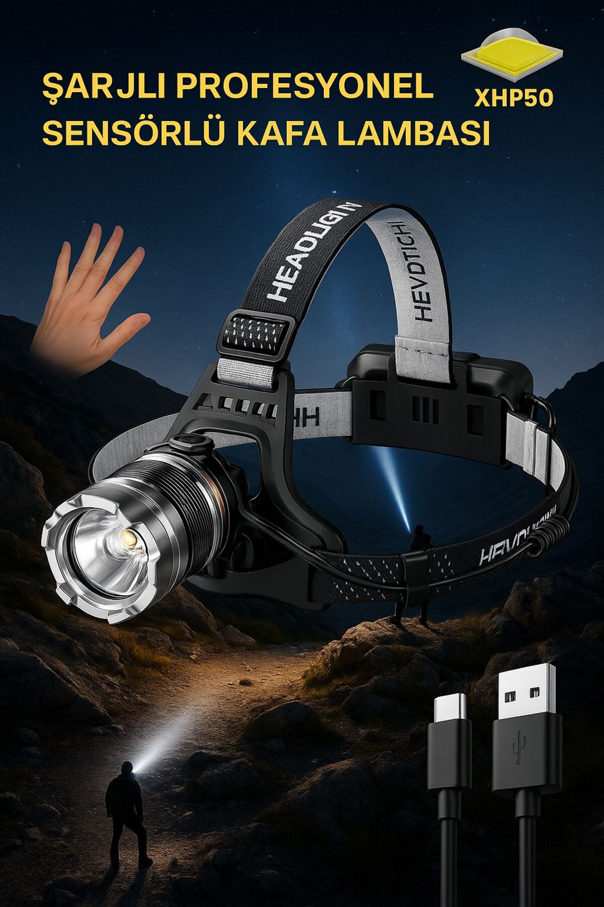 FAVBOX Sensörlü Zoomlu Profesyonel 3000 Lümen Xhp50 Led Usb’li Şarjlı Kafa Lambası