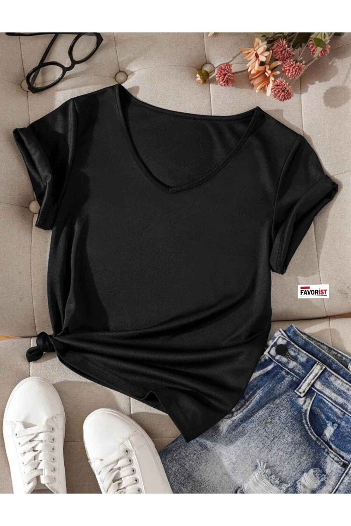 FAVORİST V YAKA (DÜZ DESENSİZ) BASİC GİY ÇIK PAMUKLU TSHİRT