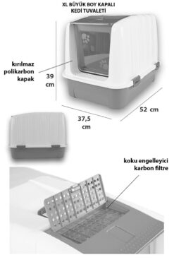 Kurtbay Şekil Lüks Kapalı Kedi Tuvaleti, Filtreli ve Kürek Hediyeli, 52×37,5×39 cm – VN11003