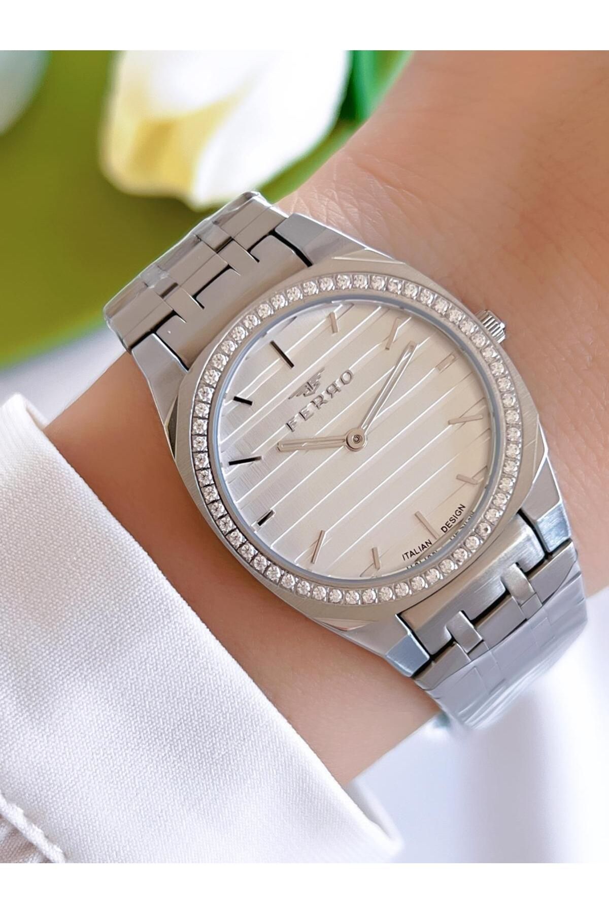 FERRO Çelik Kordon İyon Kaplama Kasa 3 Atm Suya Dayanıklı Kadın Kol Saati+Bileklik EFL43003-YA