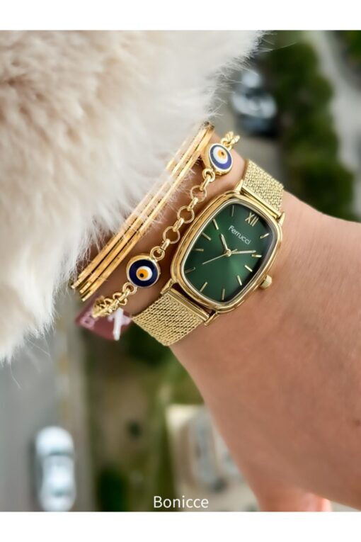 Ferrucci Dikdörtgen Kasa Çelik Kordon Altın Sarısı Kol Saati+Bileklik en ucuz fiyata kozmetikara.com sitemizden sipariş verebilirsiniz.