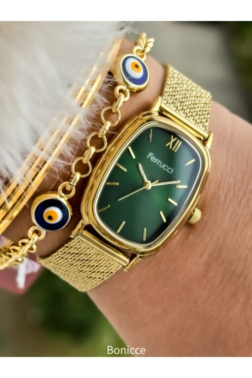 Ferrucci Dikdörtgen Kasa Çelik Kordon Altın Sarısı Kol Saati+Bileklik ürünü ucuz fiyat, hızlı kargo ve kredi kartına 12 ay taksit imkanı ile hemen sitemizden sipariş verin.