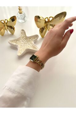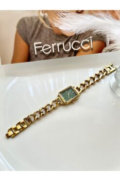 Ferrucci FERRUCCİ-(GOLD RENK) zincir detaylı yeşil iç kadran kadın kol saati