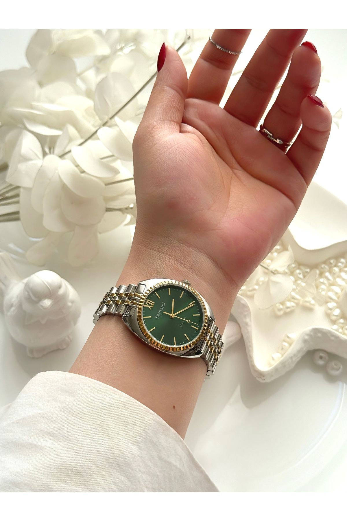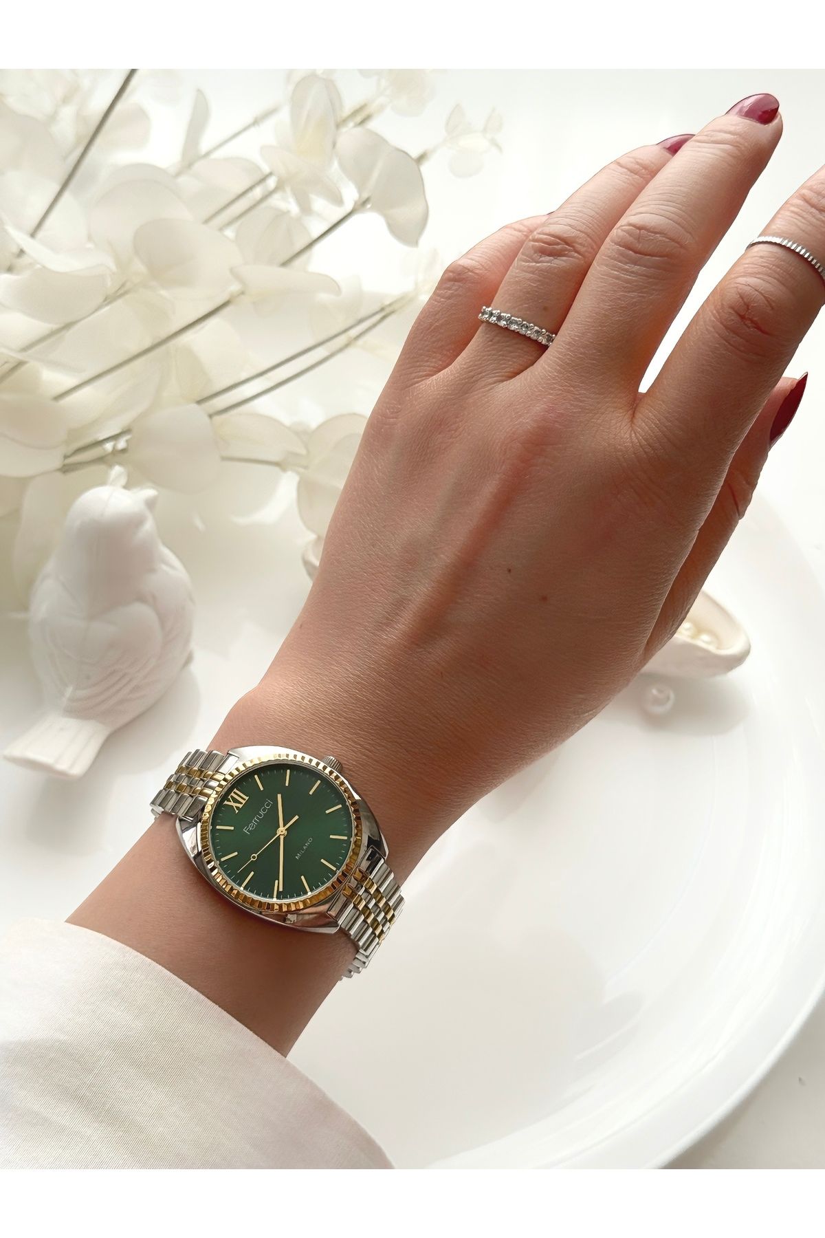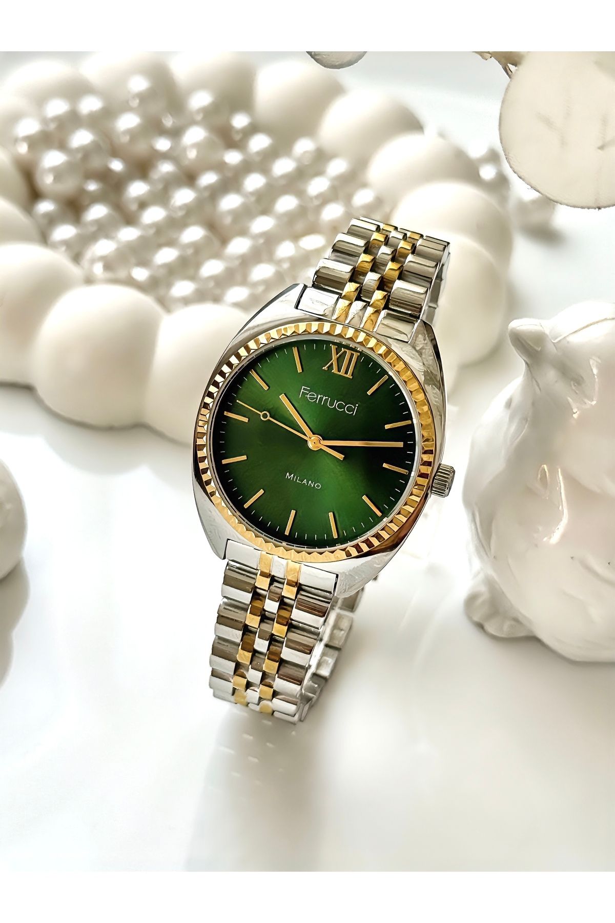 Ferrucci FERRUCCİ-(GOLD&GÜMÜŞ) yeşil iç kadran jübile kordon kadın kol saati ürününü en uygun fiyata kozmetikara.com sitemizden sipariş verebilirsiniz.
