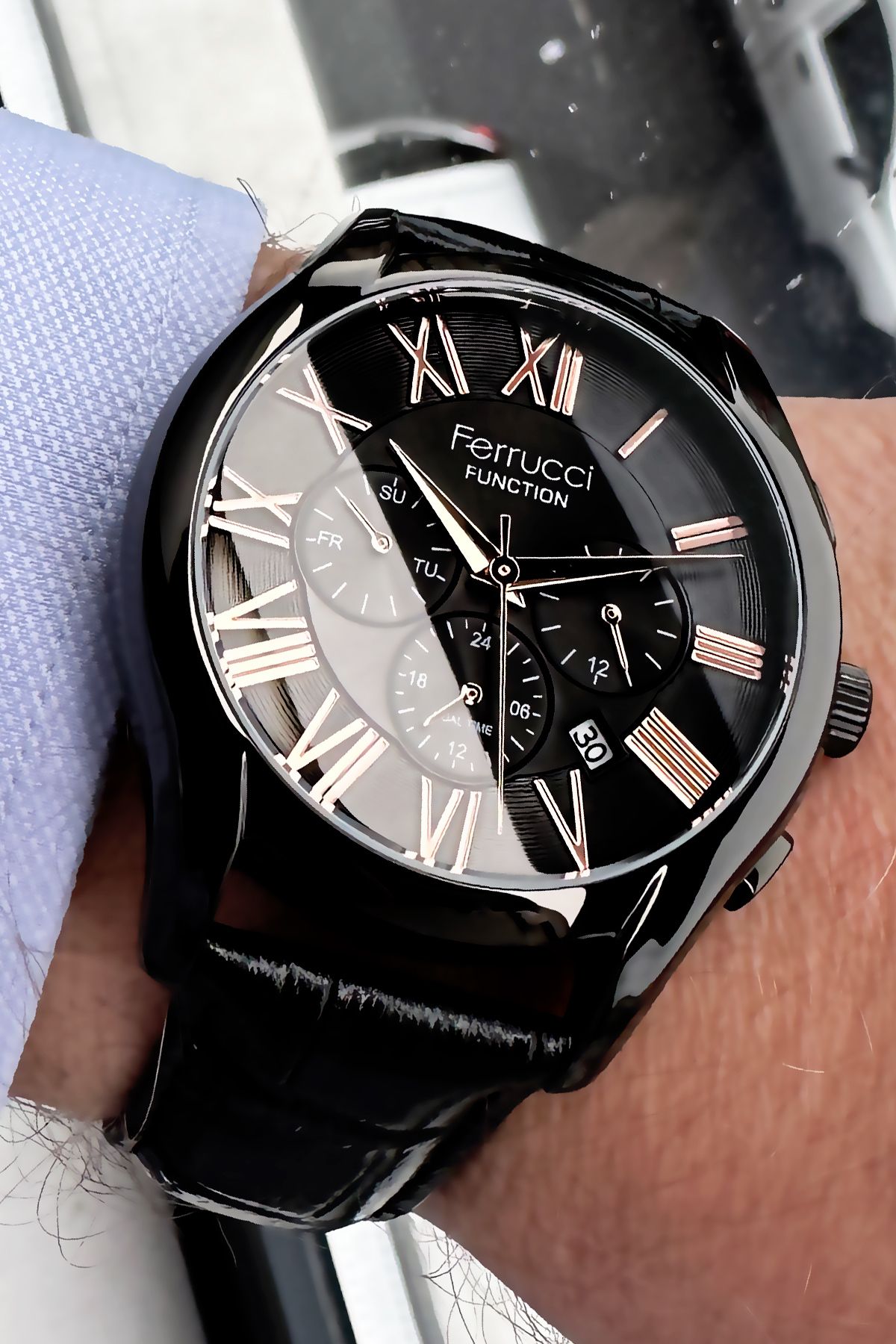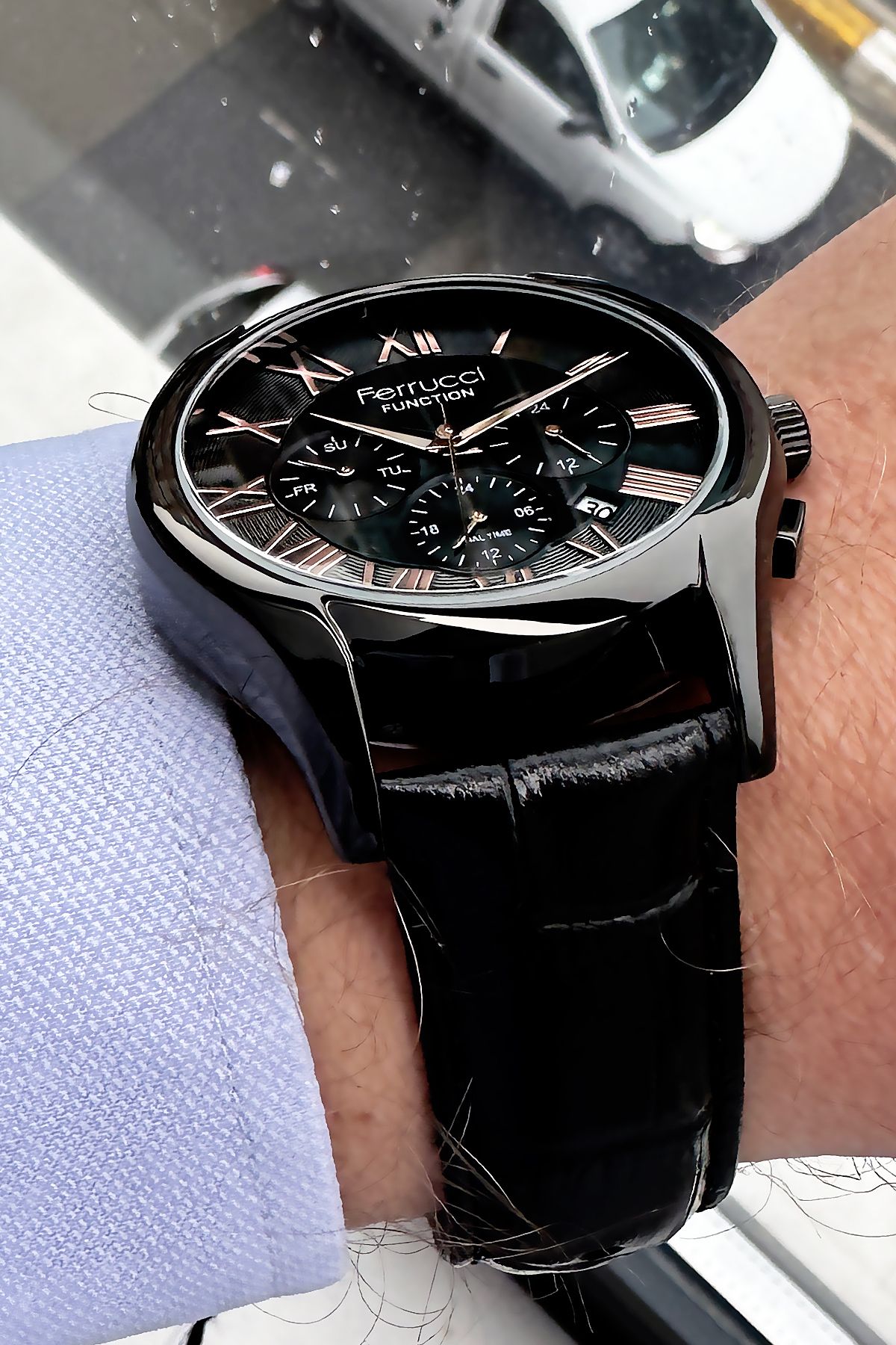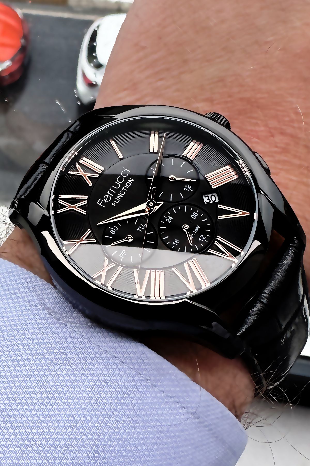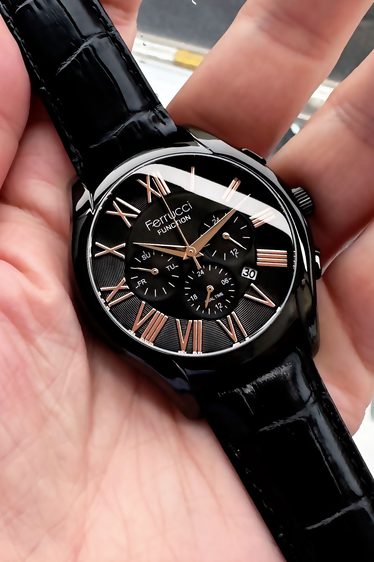 Ferrucci Function Erkek Kol Saati 3 Atm Su Geçirmez Siyah Deri Kordon + Hediye Bileklik FRE2046C4