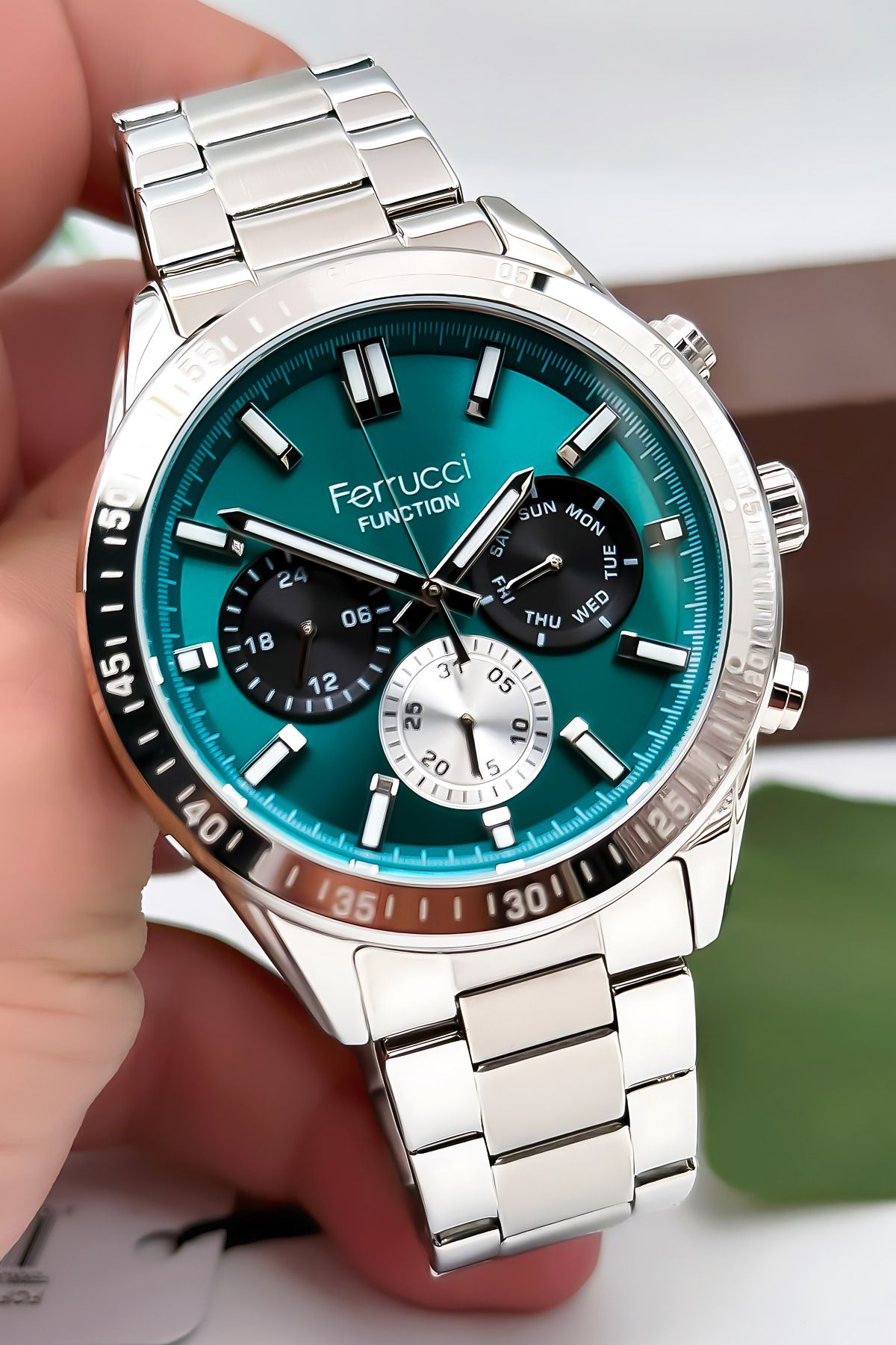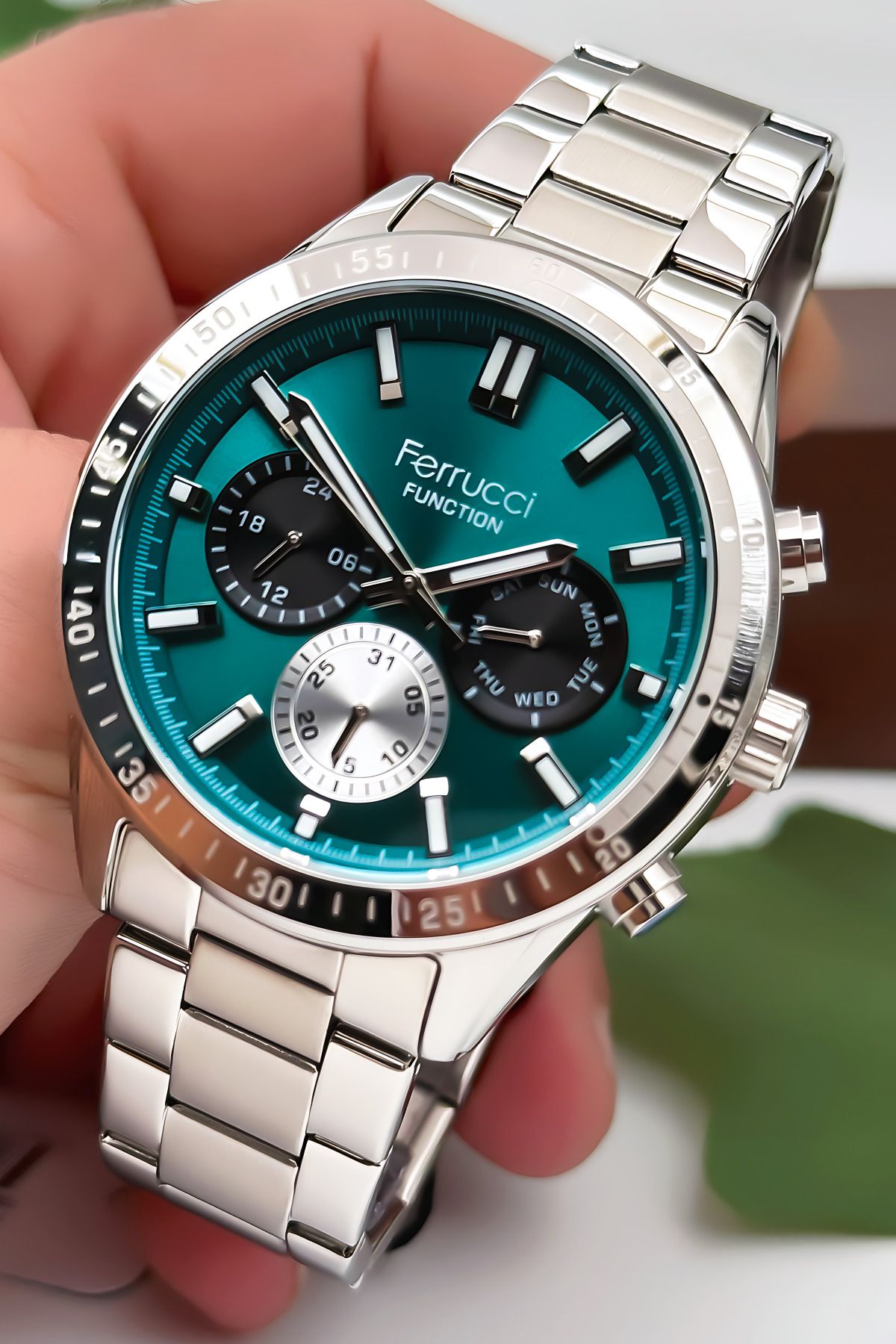 Ferrucci Function Erkek Kol Saati – Gümüş Renk Kasa Ve Çelik Kordon, Yeşil Kadran Zmfer063