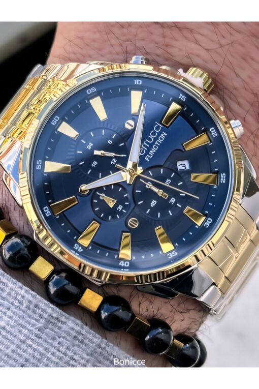 Ferrucci GÜMÜŞ SARI Çelik Kordon, LACİVERT Kadran, Fonksiyonları Aktif, Takvimli Erkek Kol Saati+Bileklik Fiyatları, Özellikleri ve Yorumları