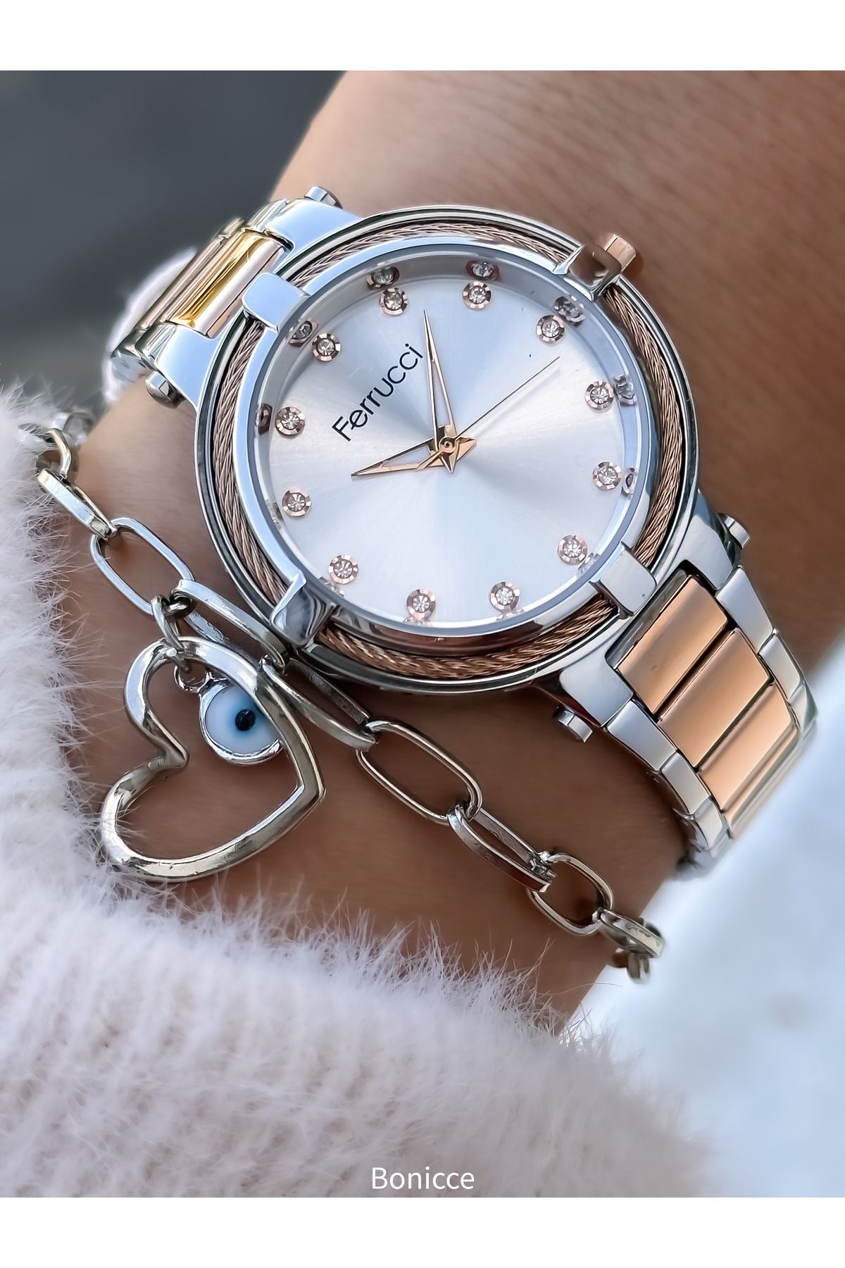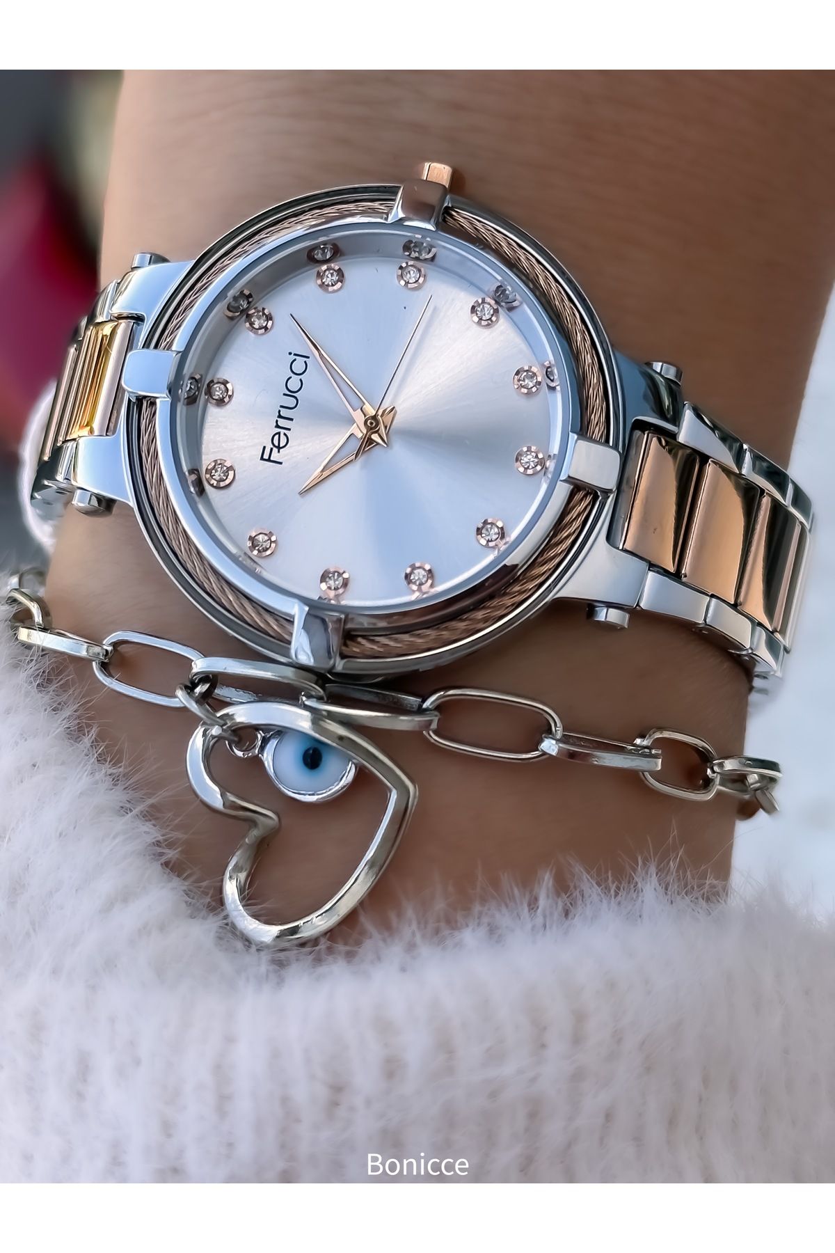 Ferrucci Iki Renk Çelik Kordon Su Geçirmez Garantili Kol Saati+bileklik Fiyatları, Özellikleri ve Yorumları