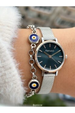 Ferrucci Marka Gümüş Renk Çelik Hasır Kordon Lacivert Kadran Mini Kasa Kadın Kol Saati +Bileklik ürününü en uygun fiyata kozmetikara.com sitemizden sipariş verebilirsiniz.