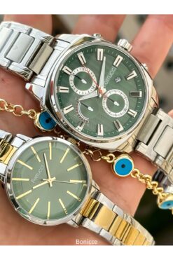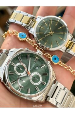 Ferrucci Marka Gümüş/Sarı Renk Çelik Kordon Sevgili , Çift Kol Saatleri Tesbih Bileklik Hediyeli