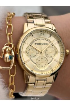 Ferrucci Sarı Renk Çelik Kordon Su Geçirmez Garantili Kol Saati+bileklik ürünü ucuz fiyat, hızlı kargo imkanı ile hemen sitemizden sipariş verin.