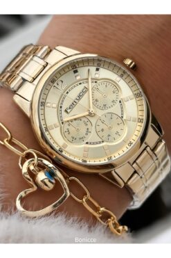 Ferrucci Sarı Renk Çelik Kordon Su Geçirmez Garantili Kol Saati+bileklik