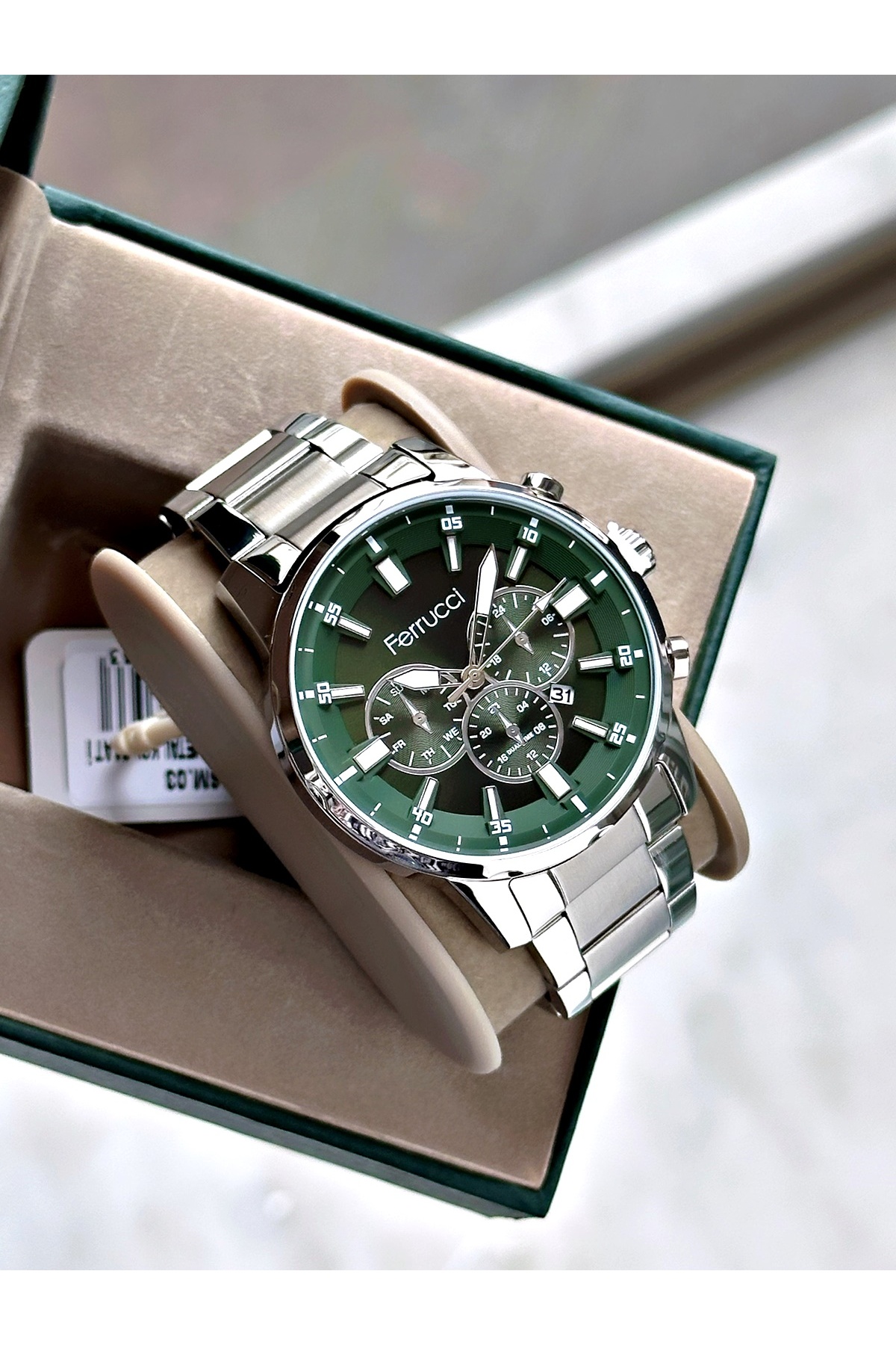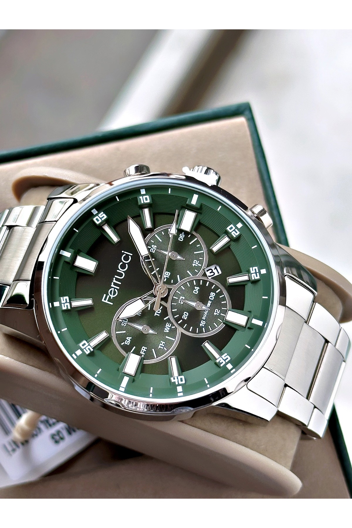 Ferrucci Takvimli 3 Atm Su Geçirmezlik Yeşil Kadran Gri Renk Erkek Kol Saati