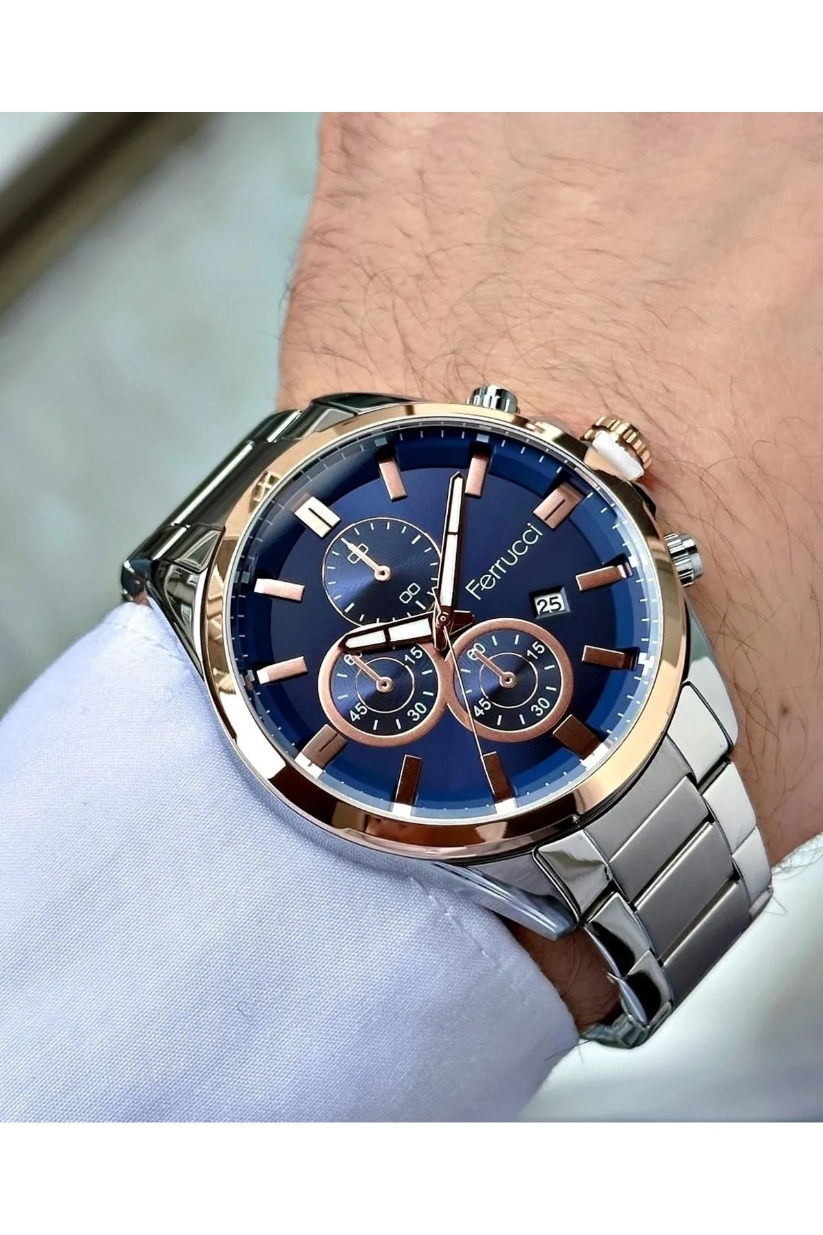Ferrucci Takvimli Lüks Erkek Kol Saati Hediye Paketli Ve Hematit Bileklikli