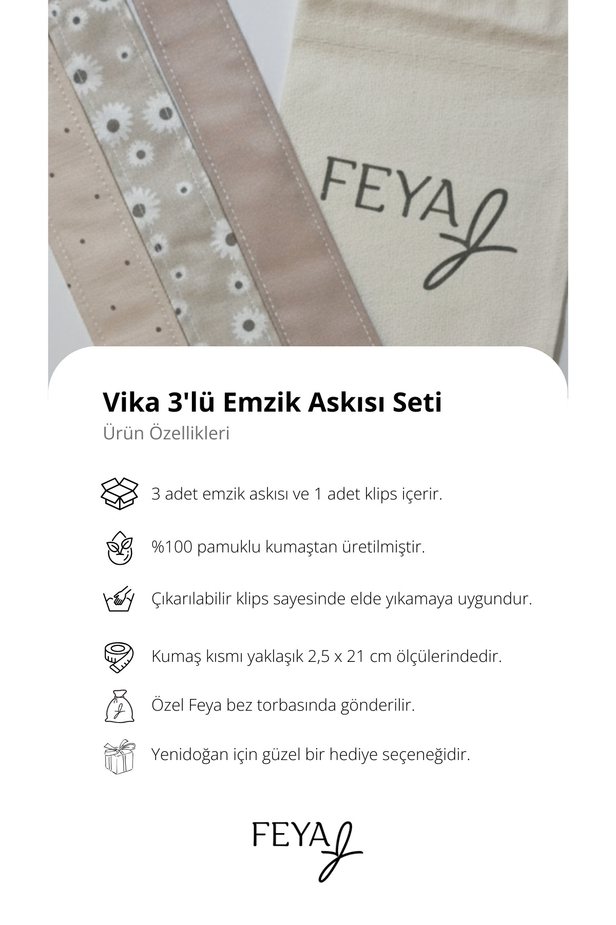 Feya Vika 3'lü Nokta, Papatya Desenli & Düz Pamuklu Yıkanabilir Emzik Askısı - Bej, Taş Rengi ürününü en uygun fiyata kozmetikara.com sitemizden sipariş verebilirsiniz.