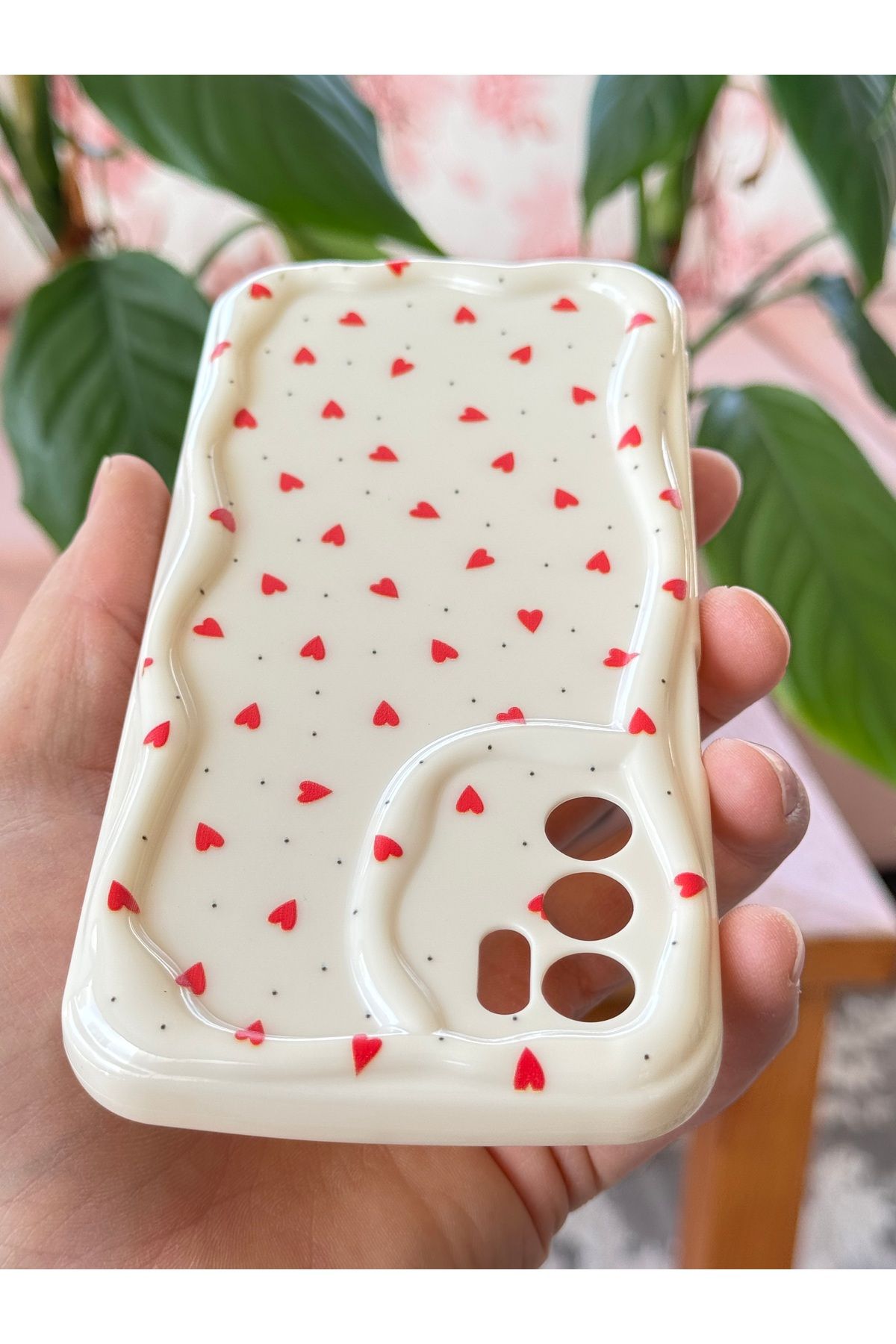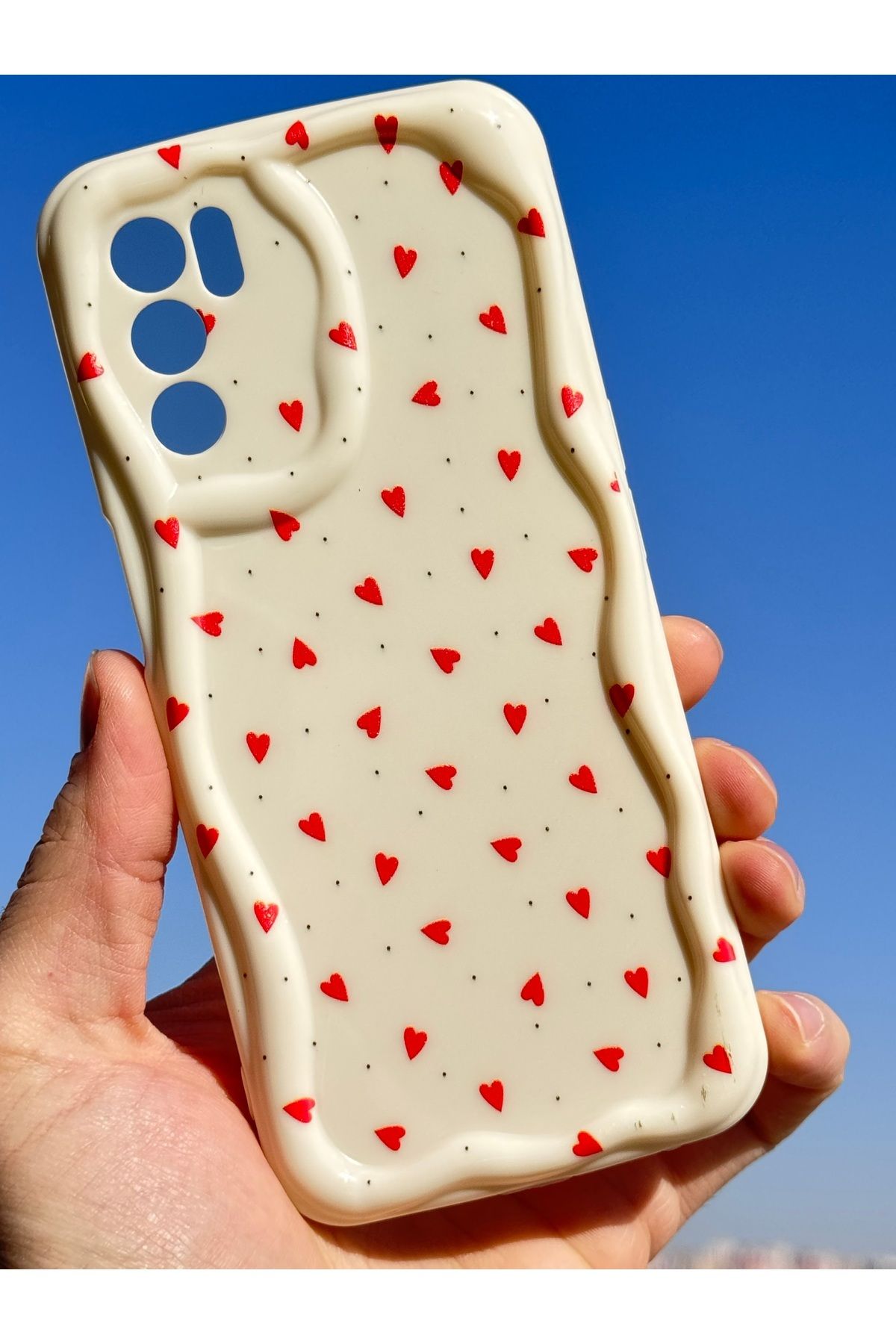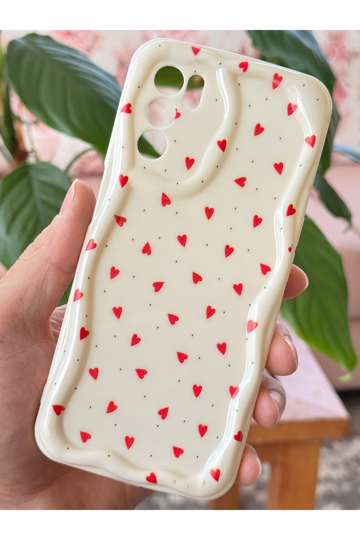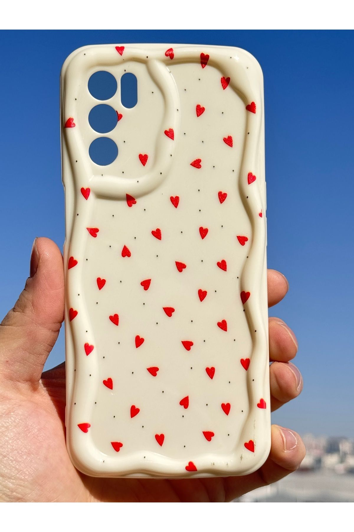 Fibaks A16 Kılıf Kamera Korumalı Dalga Kenarlı Kırmızı Kalp Desenli Silikon Kapak