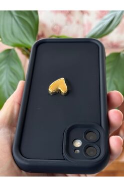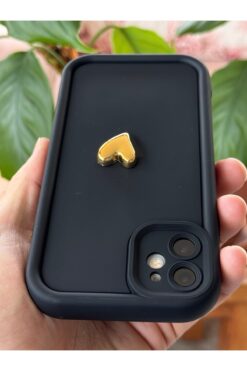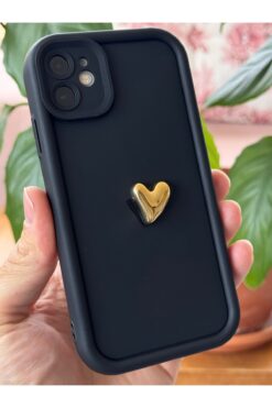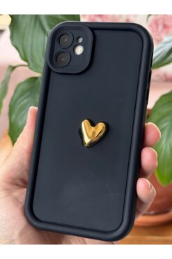 Apple iPhone 11 modelinize özel tasarlanmış, telefonunuzu tam olarak saran 3D kalp desenli siyah silikon kılıf.