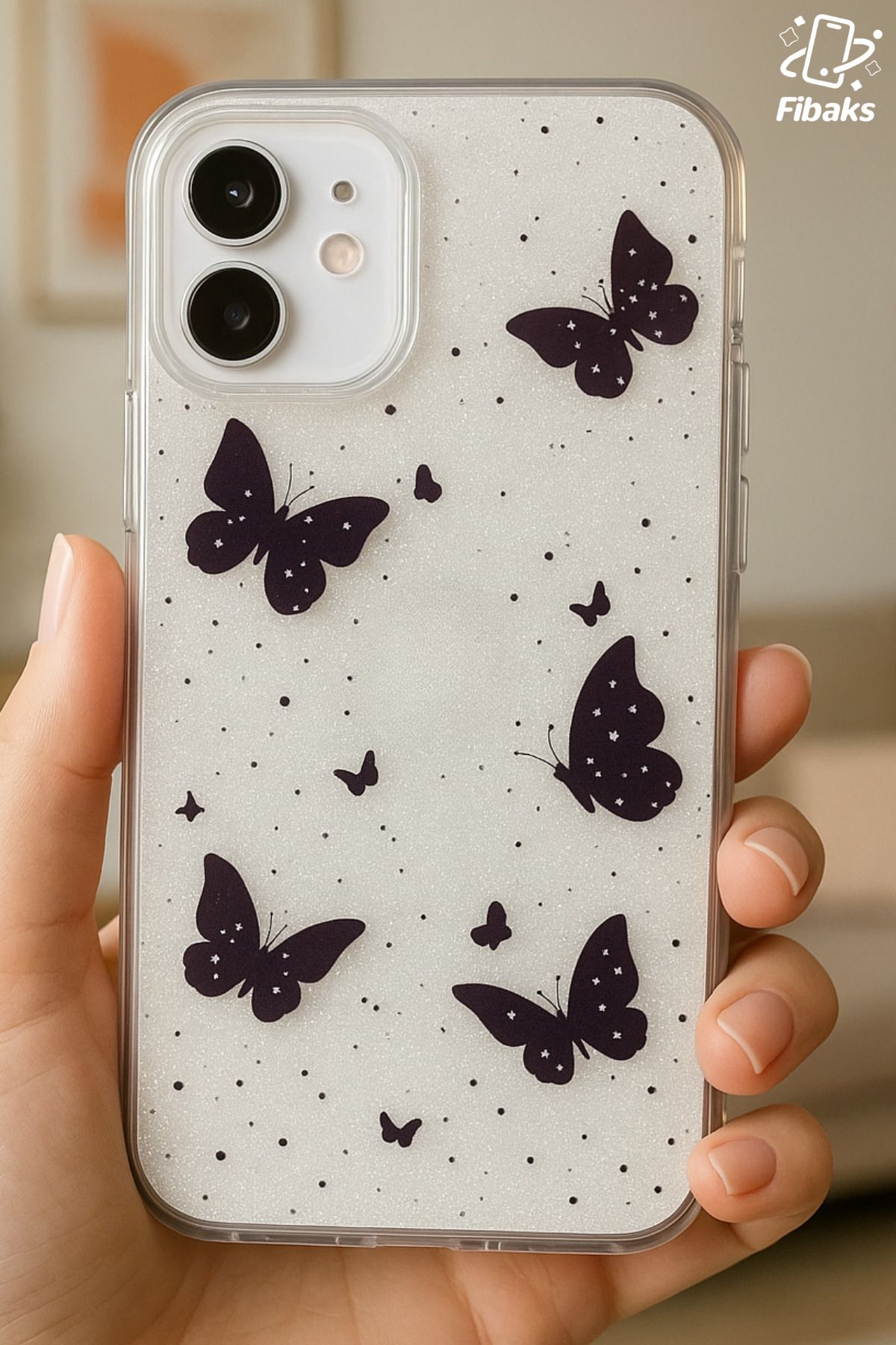 Fibaks Apple iPhone 12/12 Pro Uyumlu Kılıf Simli Siyah Kelebek Desenli Renkli Parlak Darbe Emici Kapak ürününü en uygun fiyata kozmetikara.com sitemizden sipariş verebilirsiniz.