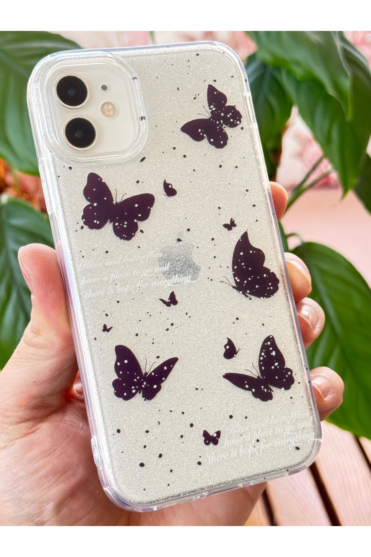 KVK PRİVACY Apple iPhone 13-14 Uyumlu Tüylü Kelebek Hologramlı Kılıf Darbeye Karşı Dayanıklı Kapak