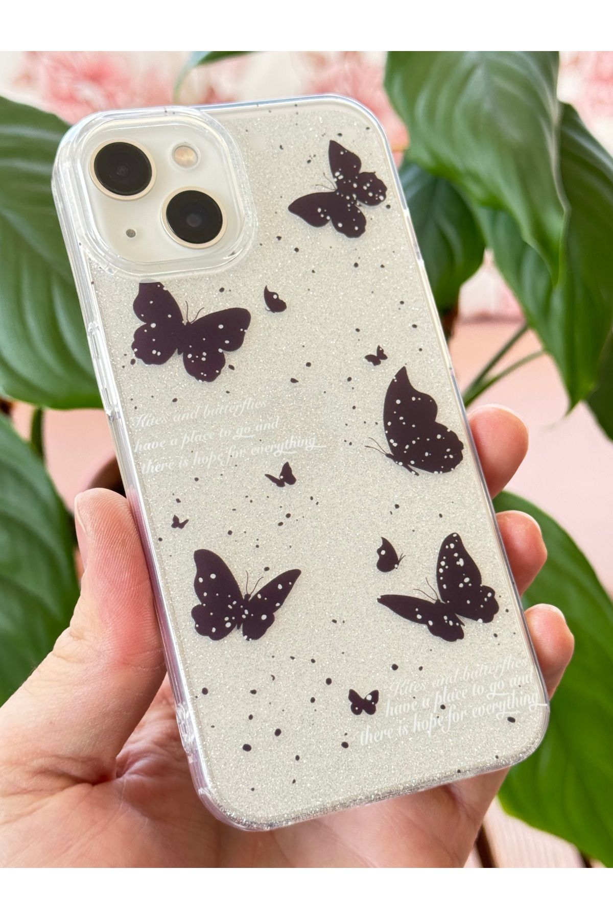 Fibaks Apple Iphone 13 - 14 - 15 Uyumlu Kılıf Simli Siyah Kelebek Desenli Renkli Parlak Darbe Emici Kapak ürünü ucuz fiyat, hızlı kargo imkanı ile hemen sitemizden sipariş verin.