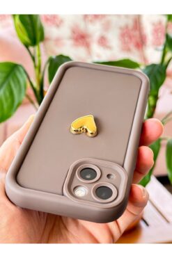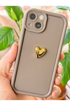 – Apple iPhone 13 modeline özel tasarlanmış, telefonunuzu tam olarak saran 3D kalp desenli kahverengi renkli silikon kapak.