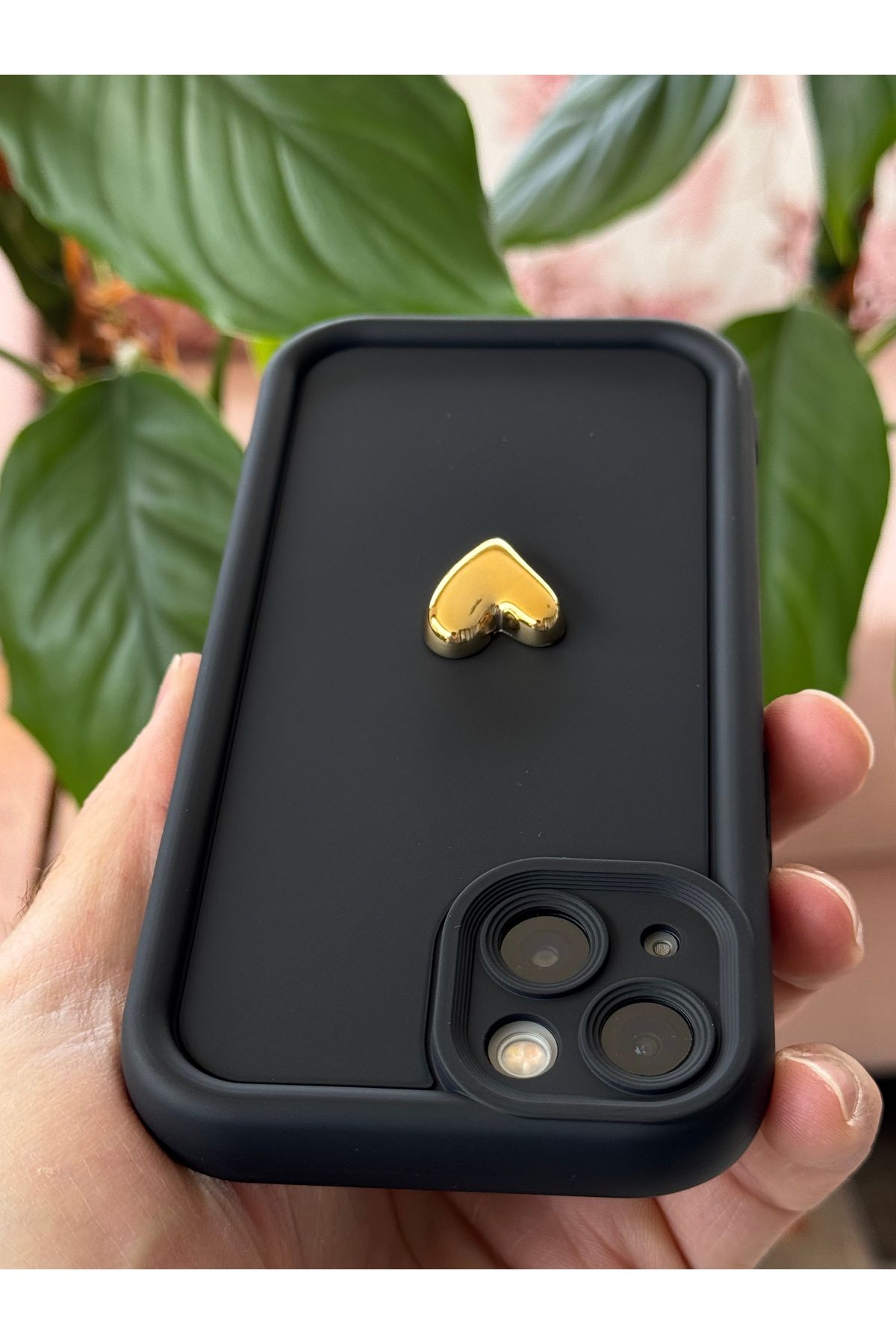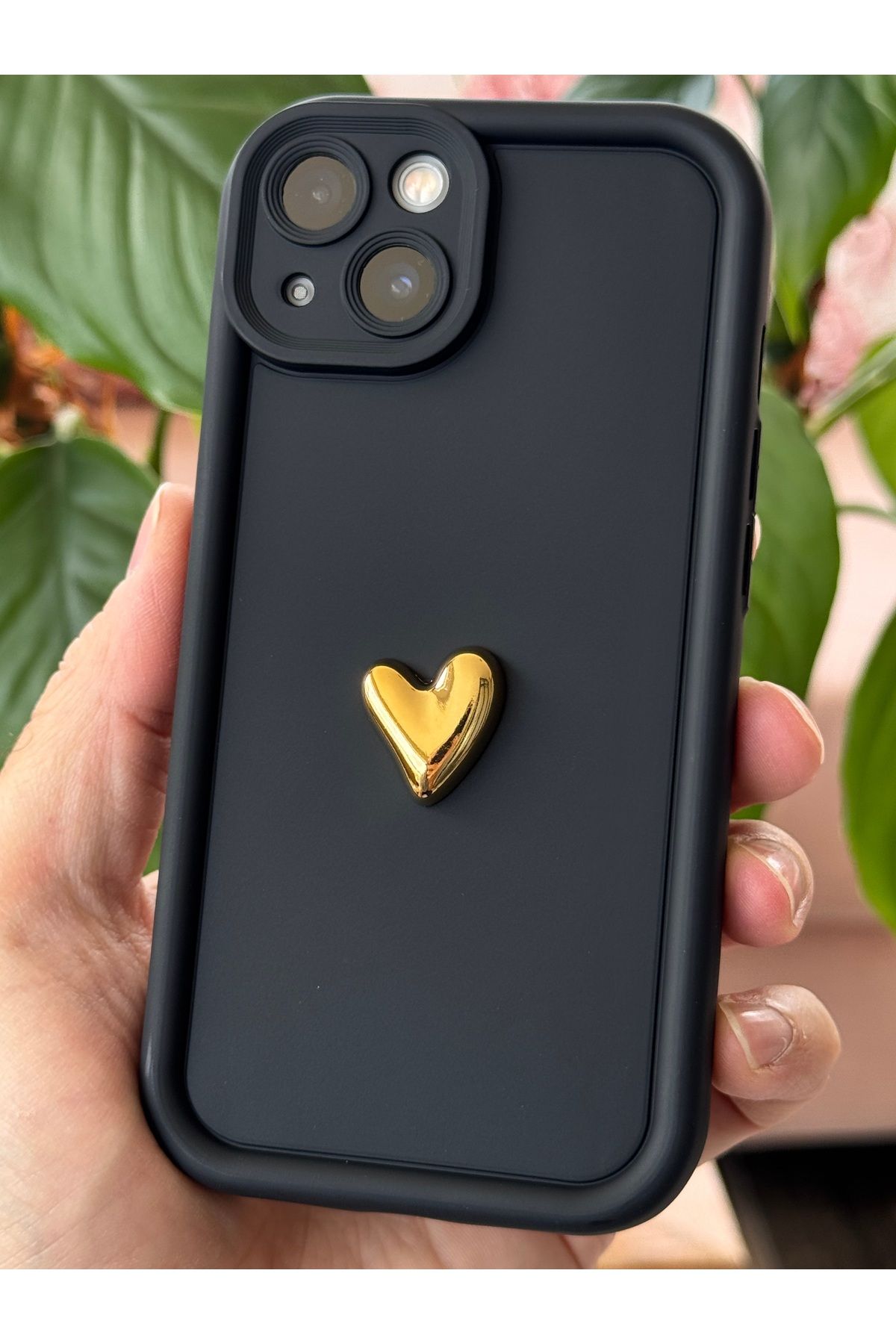 – Apple iPhone 13 modelinize özel tasarlanmış, telefonunuzu tam olarak saran 3D kalp desenli siyah silikon kılıf.
