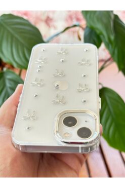 Fibaks Apple iPhone 14 Kılıf Fiyonk Desenli Şeffaf Simli Gümüş Kamera Çıkıntılı Parlak Kapak ürünü ucuz fiyat, hızlı kargo imkanı ile hemen sitemizden sipariş verin.