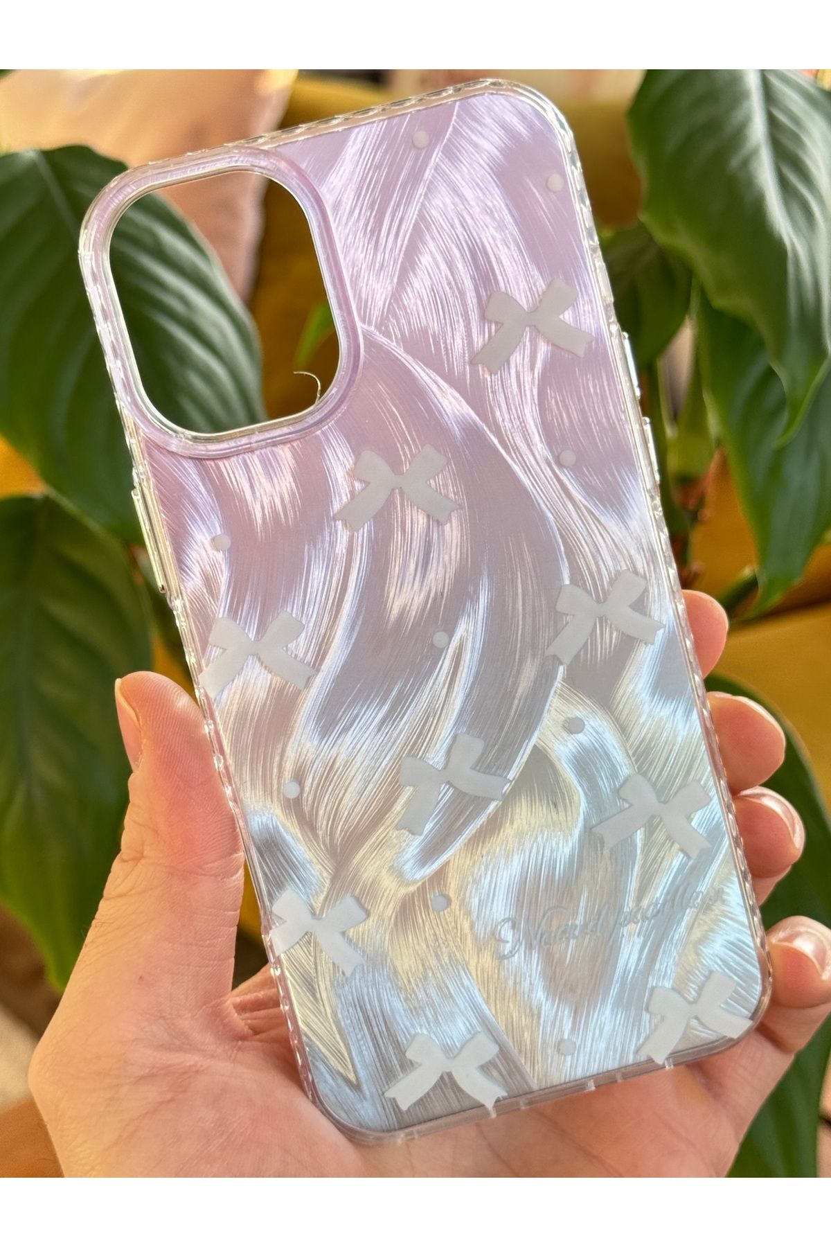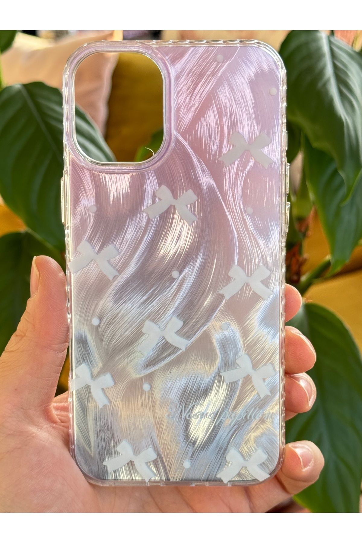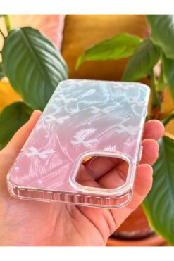 Apple iPhone 16 modelinize özel tasarlanmış, parlak fiyonk deseniyle şıklığı ve korumayı bir arada sunan silikon kılıf.