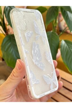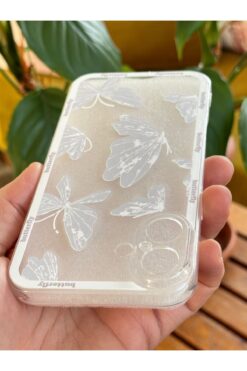 Apple iPhone 16 modelinize özel tasarlanmış, telefonunuzu tam olarak saran şeffaf kelebek desenli kılıf.