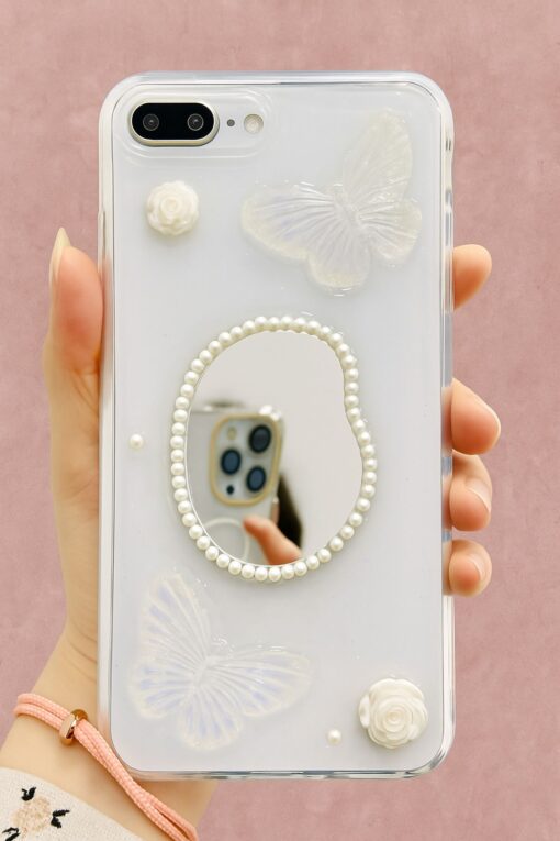 Fibaks Apple iPhone 7/8 Plus Kılıf 3D Kelebek Gül Desenli Aynalı Simli Şeffaf Tasarımlı Silikon Kapak en ucuz fiyata kozmetikara.com sitemizden sipariş verebilirsiniz.