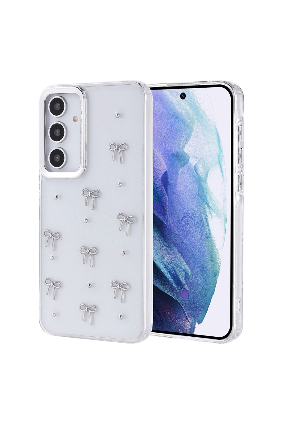 Fibaks Galaxy A55 Kılıf Fiyonk Desenli Şeffaf Simli Gümüş Kamera Çıkıntılı Parlak Kapak ürünü ucuz fiyat, hızlı kargo imkanı ile hemen sitemizden sipariş verin.