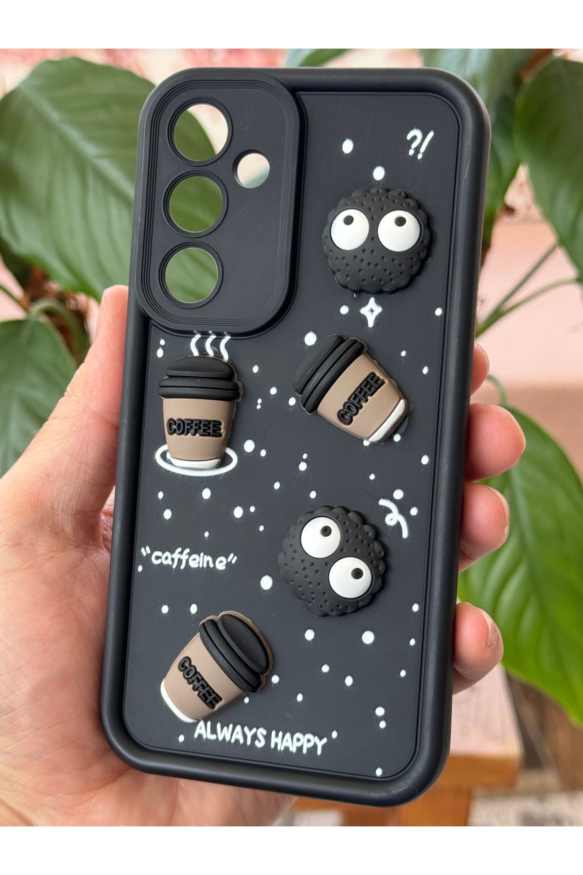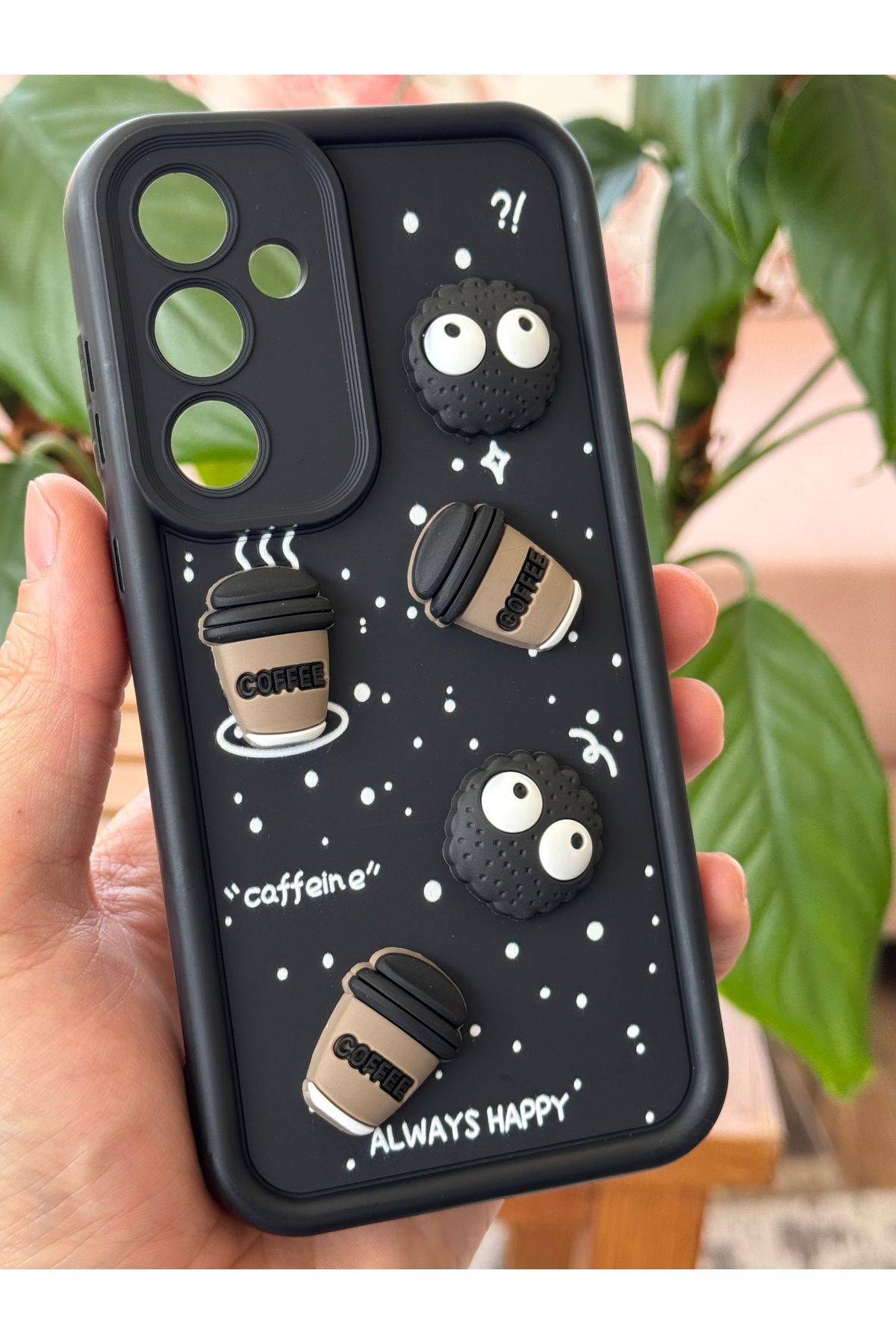 Fibaks Galaxy S21 Fe Kılıf Tasarımlı Desenli Kamera Korumalı Coffee Kurabiye Siyah Yumuşak Silikon Kapak