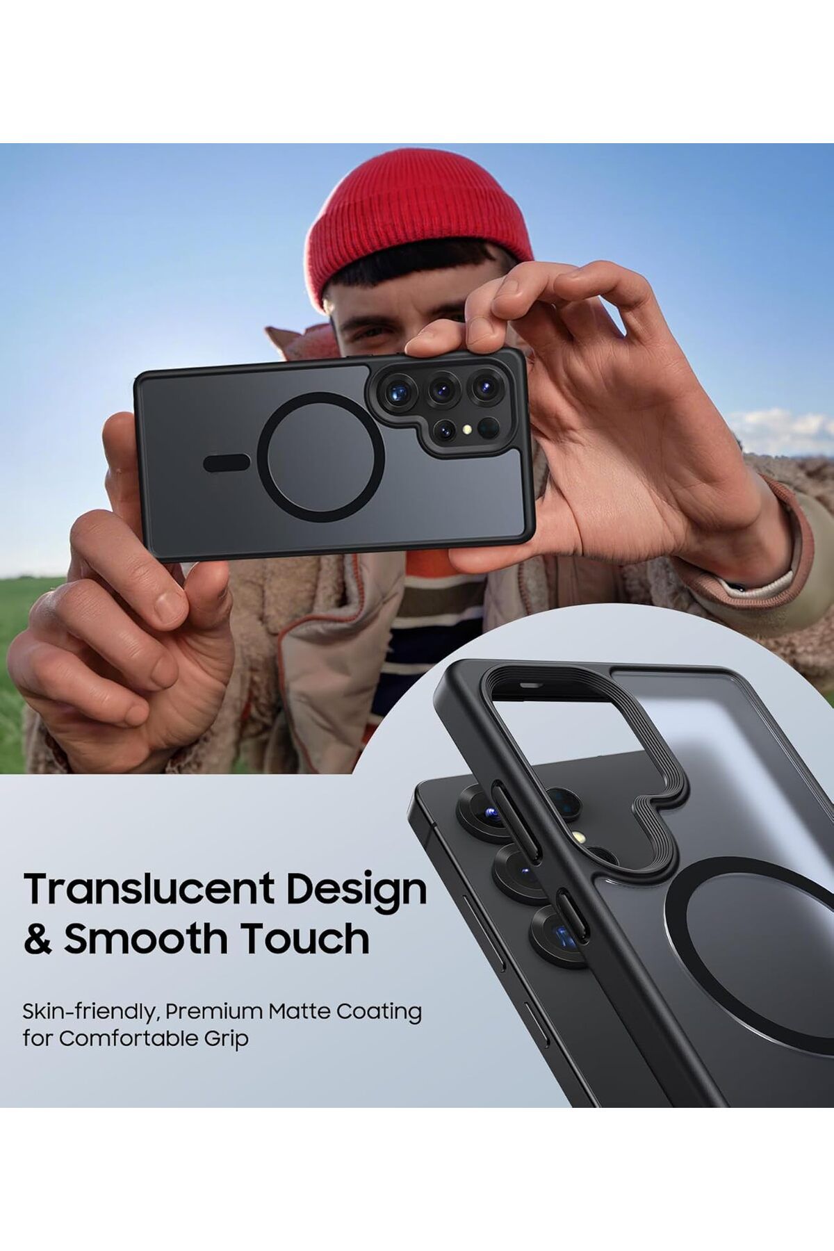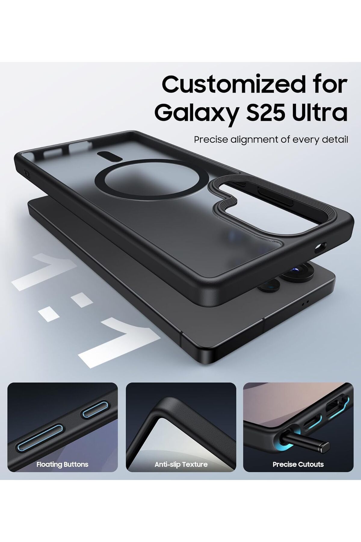 Fibaks Galaxy S25 Ultra Uyumlu Kılıf Kamera Çıkıntılı Magsafe Şarj Destekli Hassas Tuşlu Yumuşak Mat Kapak