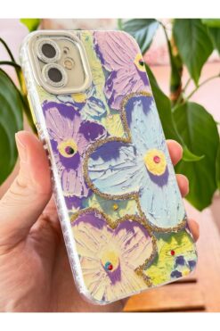 Apple iPhone 11 modelinize özel tasarlanmış, telefonunuzu darbelere ve çizilmelere karşı koruyan parlak mavi çiçek desenli kılıf.