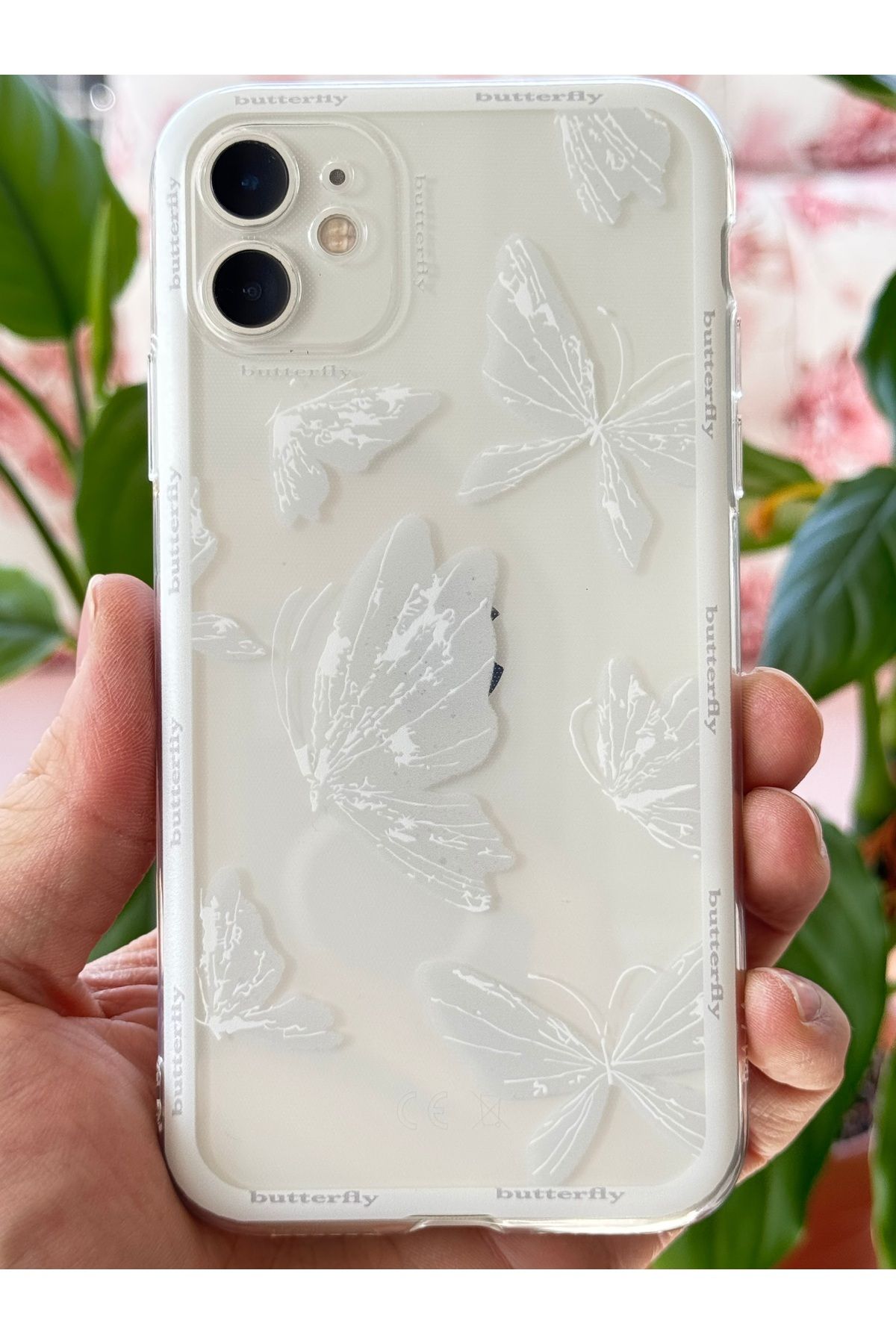 Fibaks İphone 11 Uyumlu Kılıf Tasarımlı Desenli Kamera Korumalı Şeffaf Kelebek Esnek Yumuşak Silikon Kapak