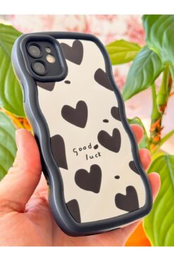 iPhone 12 modelinize özel tasarlanmış, aynalı kalp desenleriyle şıklığı ve korumayı bir arada sunan silikon kılıf.