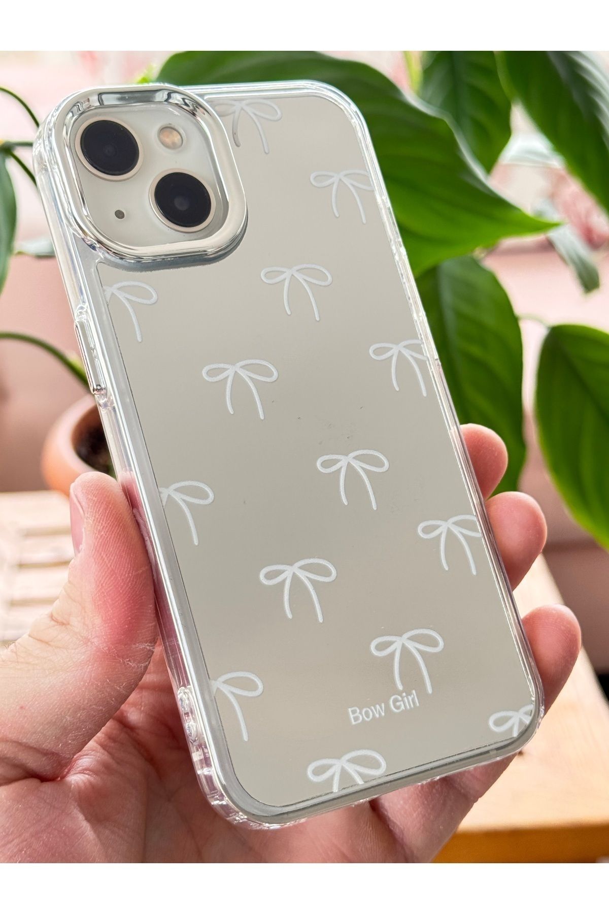 – iPhone 15 modelinize özel tasarlanmış, telefonunuzu darbelere ve çizilmelere karşı koruyan aynalı bow girl desenli kılıf.