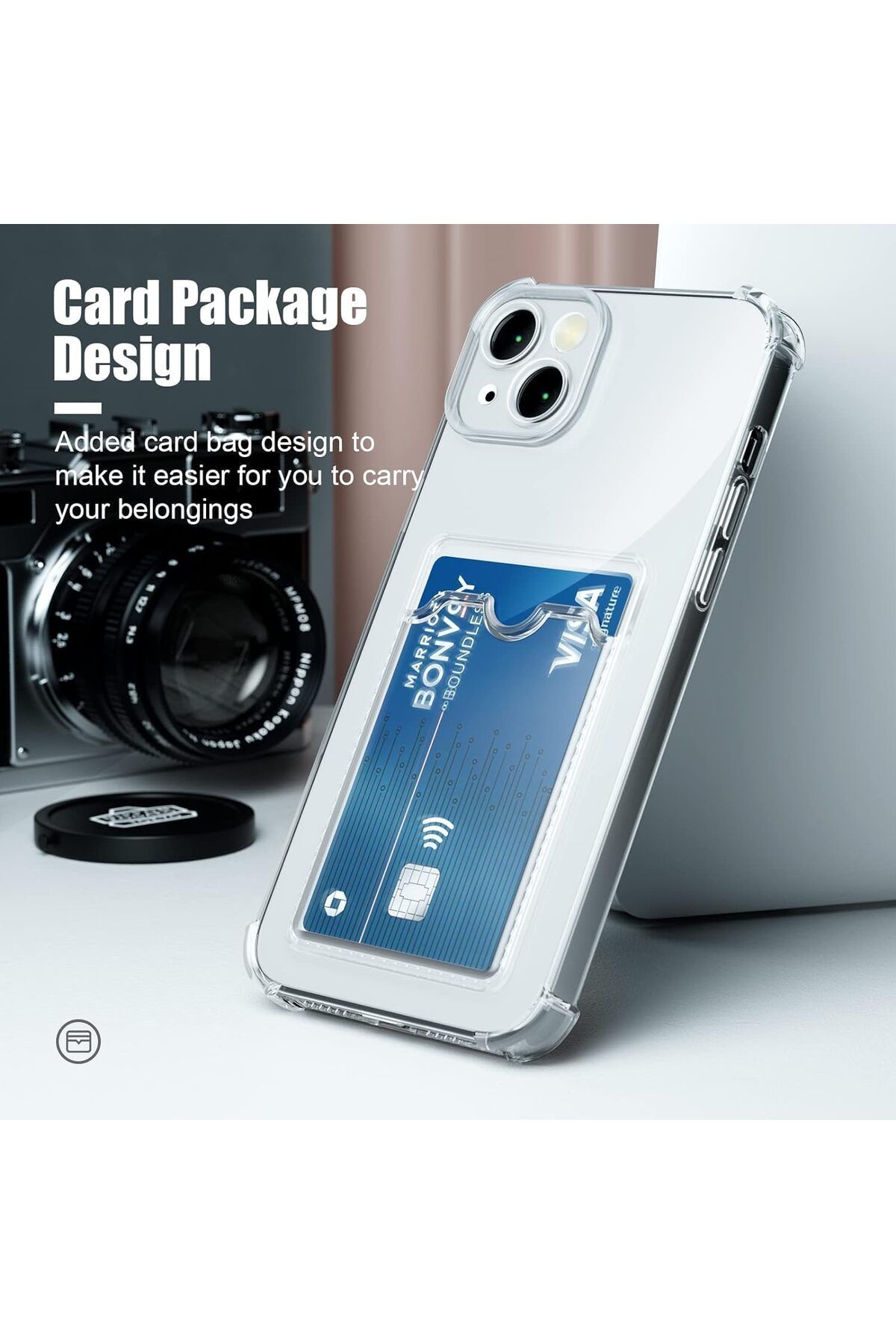 – Kartlık cüzdan bölmesi sayesinde kartlarınızı ve nakit paranızı yanınızda taşımanız için pratik bir çözüm sunar.