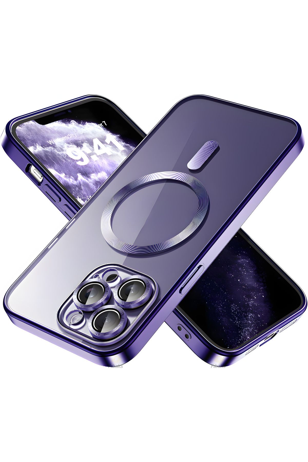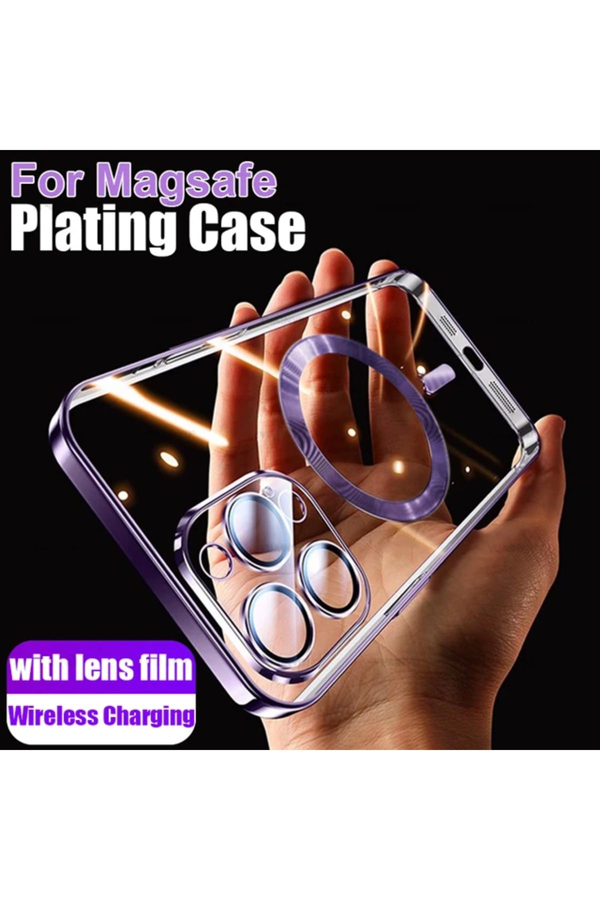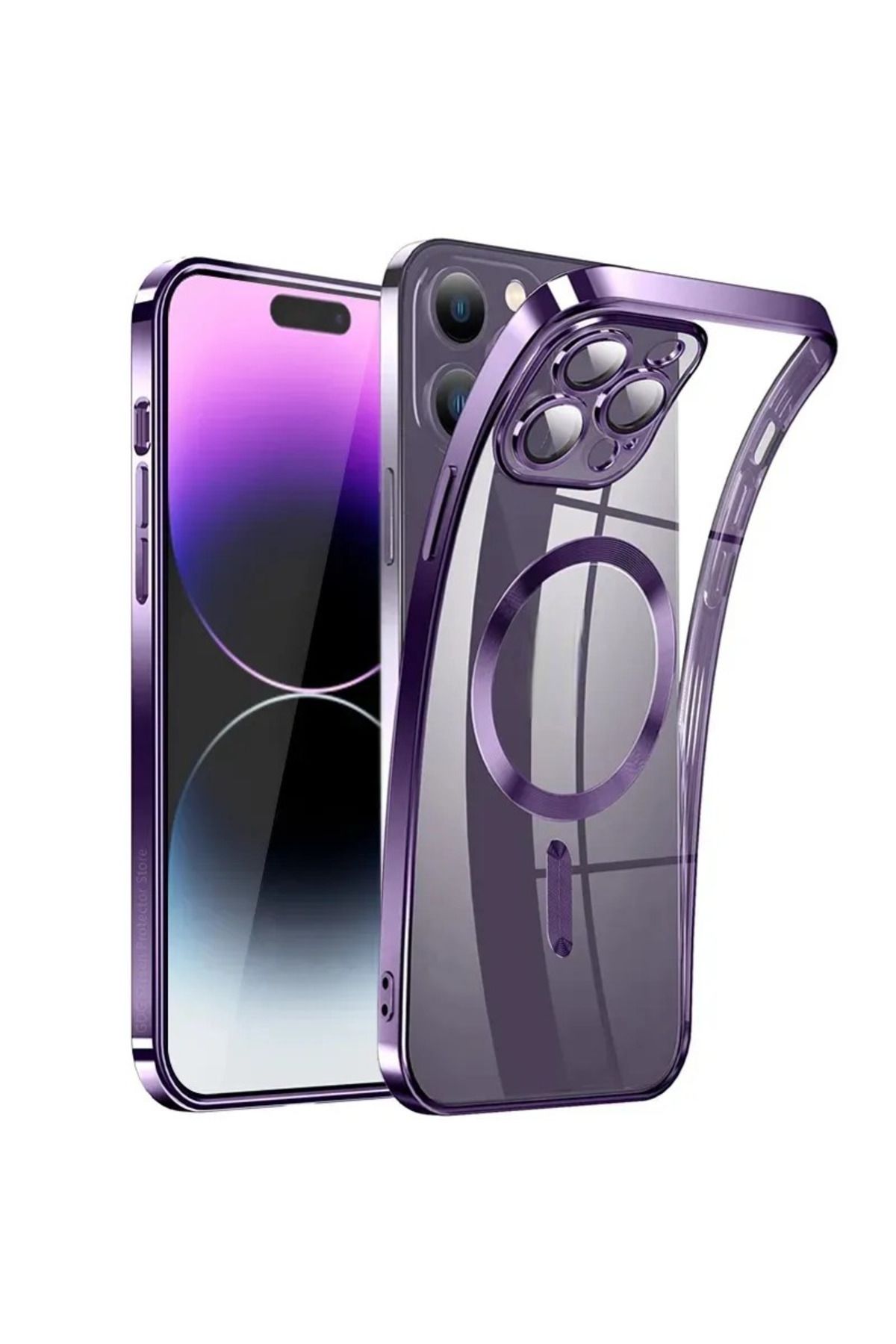 Fibaks İphone 14 Pro Max Uyumlu Kılıf Kamera Lens Korumalı Magsafe Şarj Kilifi Şeffaf Renkli Yumuşak Kapak