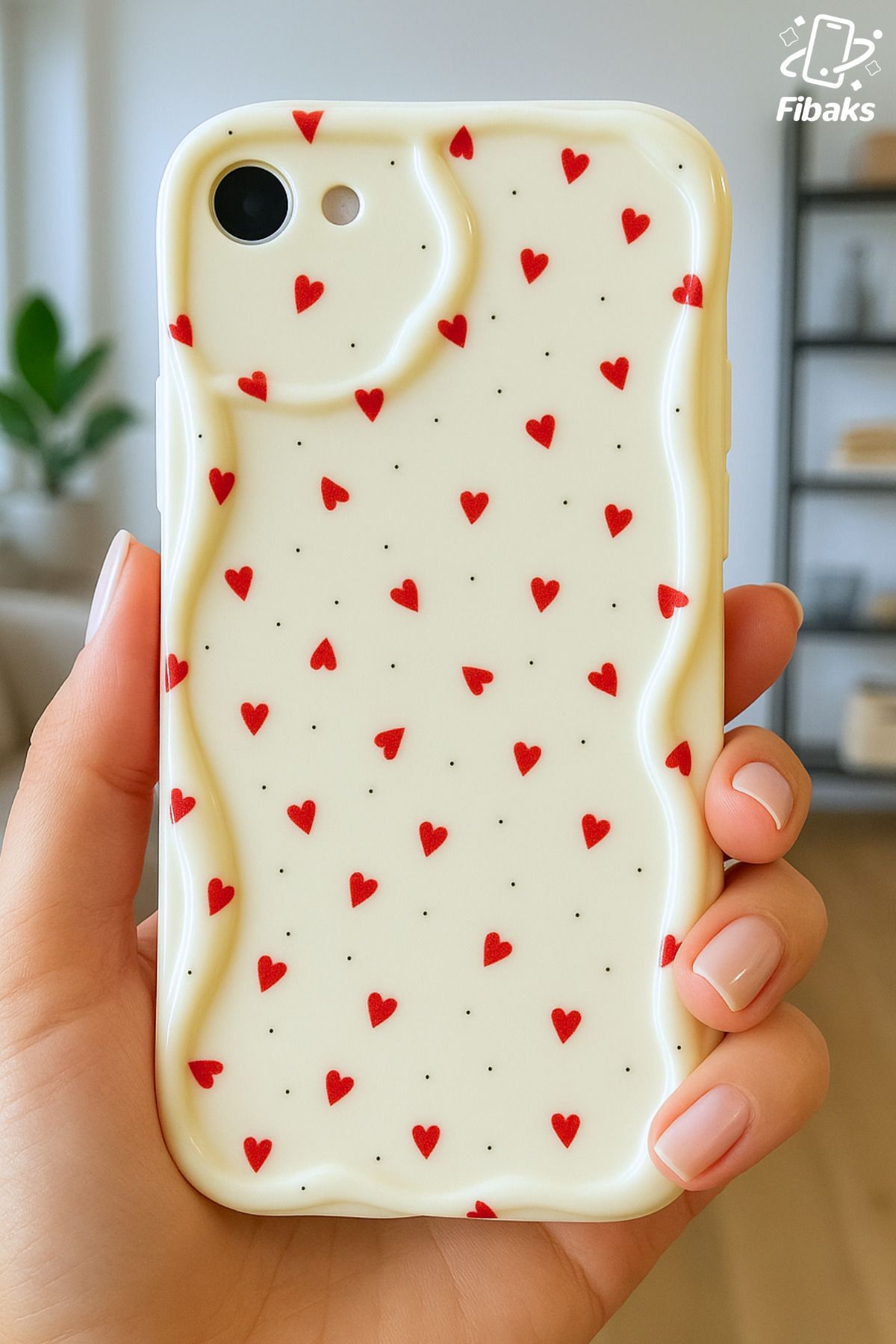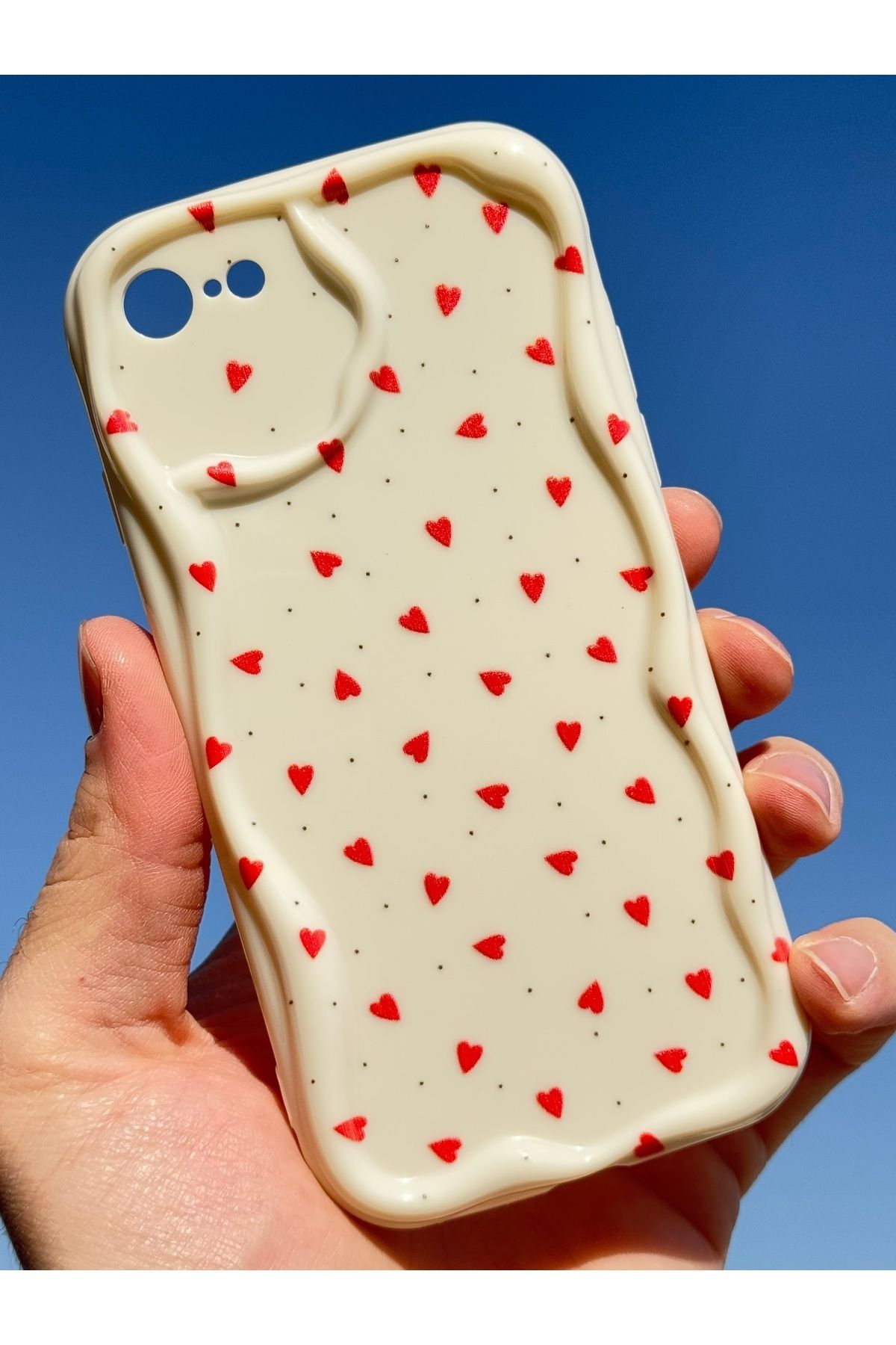 Fibaks iPhone 7/8/Se 2020 2022 Kılıf Kamera Korumalı Dalga Kenarlı Kırmızı Kalp Desenli Silikon Kapak ürününü en uygun fiyata kozmetikara.com sitemizden sipariş verebilirsiniz.