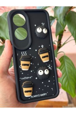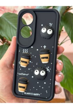 Fibaks Oppo A60 Uyumlu Kamera Korumalı Coffee Kurabiye Figürlü Siyah Yumuşak Silikon Kapak ürünü ucuz fiyat, hızlı kargo imkanı ile hemen sitemizden sipariş verin.