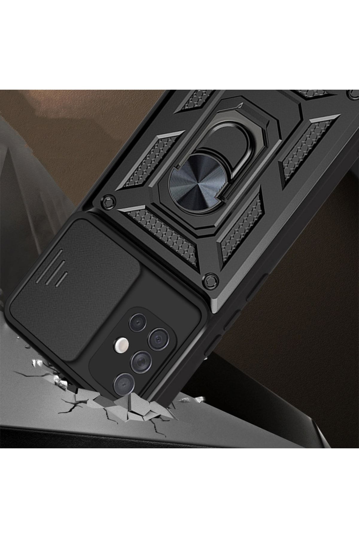 Fibaks Oppo A74 Uyumlu Kılıf Kamera Korumalı Sürgülü Yüzüklü Armor Military Tank Zırh