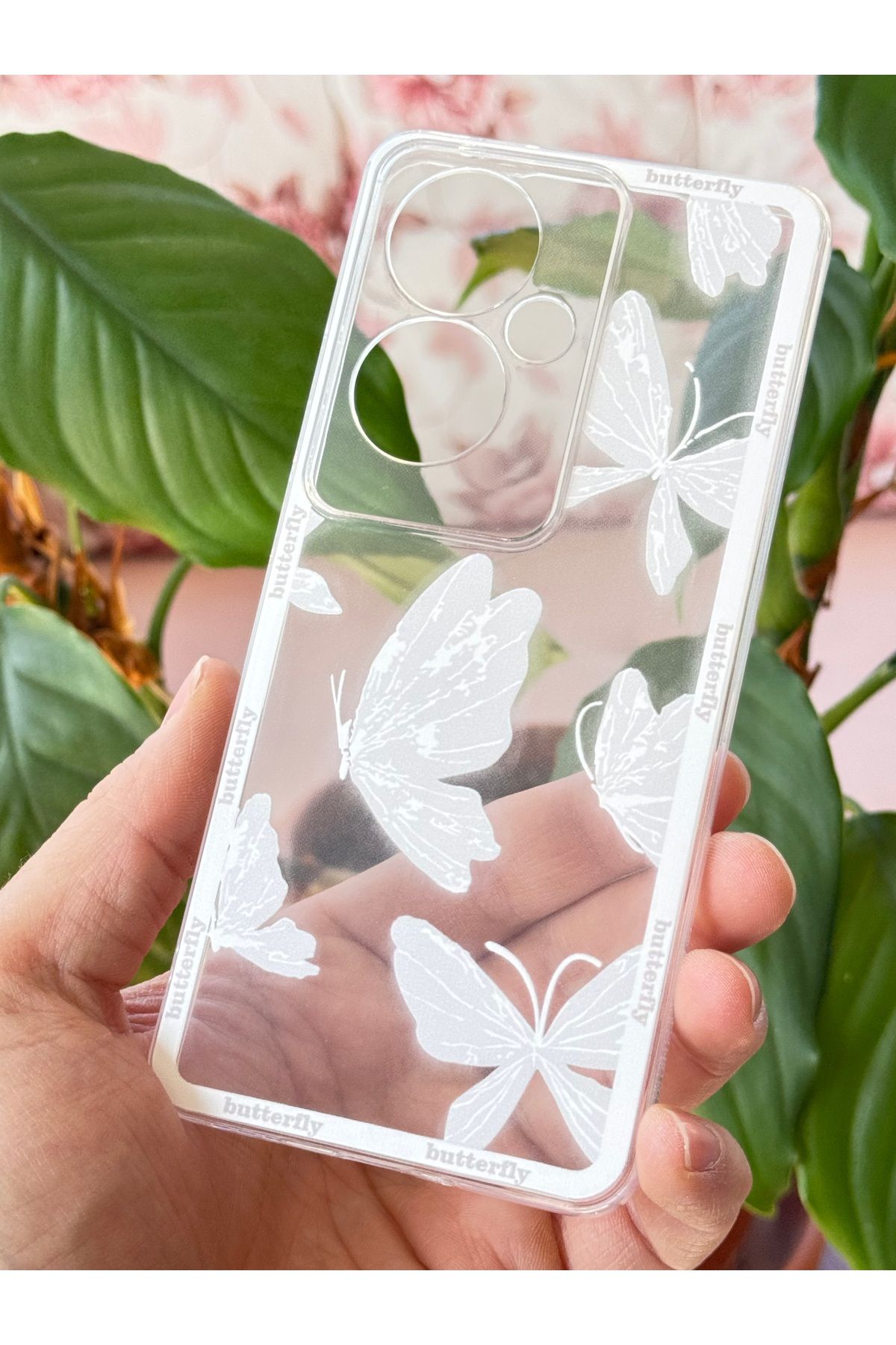 Oppo Reno 11F modelinize özel tasarlanmış, telefonunuzu tam olarak saran şeffaf kelebek desenli kılıf.