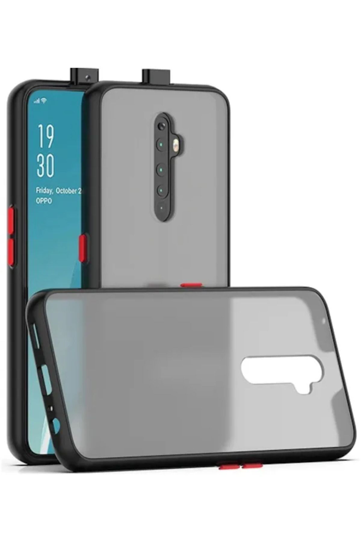 Fibaks Oppo Reno 2z Kılıf Mat Parmak Izi Yapmaz Kamera Korumalı Renkli Tuşlu Sert Silikon Kapak