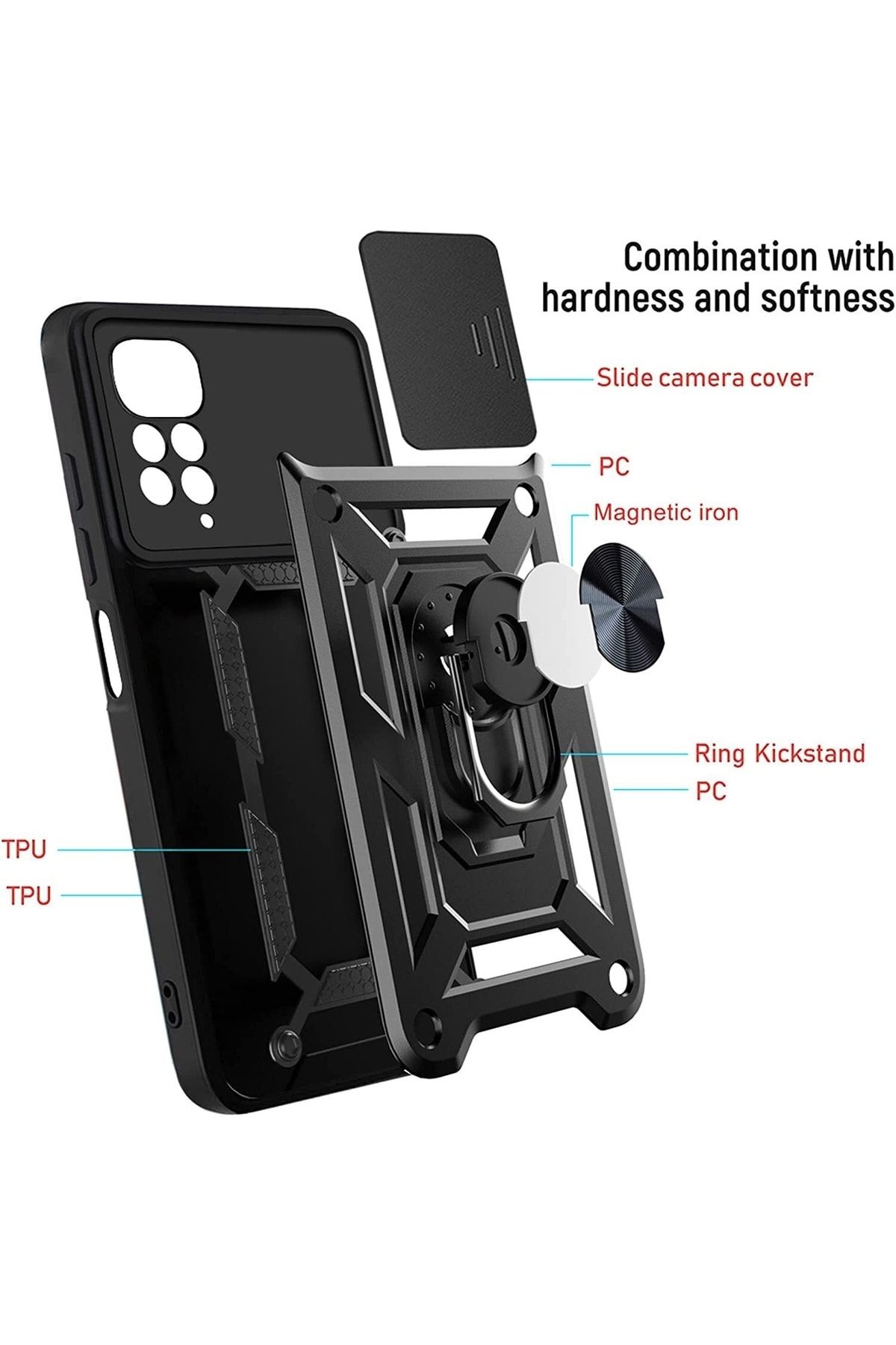 Fibaks Redmi Note 11 Pro & 12 Pro 4g Kılıf Kamera Korumalı Sürgülü Yüzüklü Armor Military Tank