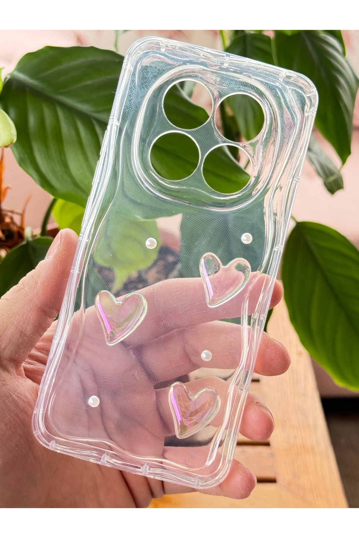 Fibaks Redmi Note 14 Pro 4Guyumlu Kılıf Kalpli İnci Tasarımlı Desenli Kamera Korumalı Şeffaf Silikon Kapak ürünü ucuz fiyat, hızlı kargo imkanı ile hemen sitemizden sipariş verin.
