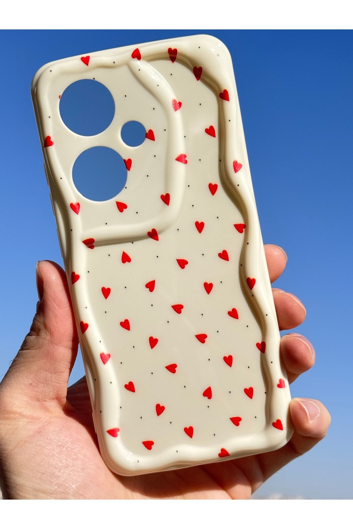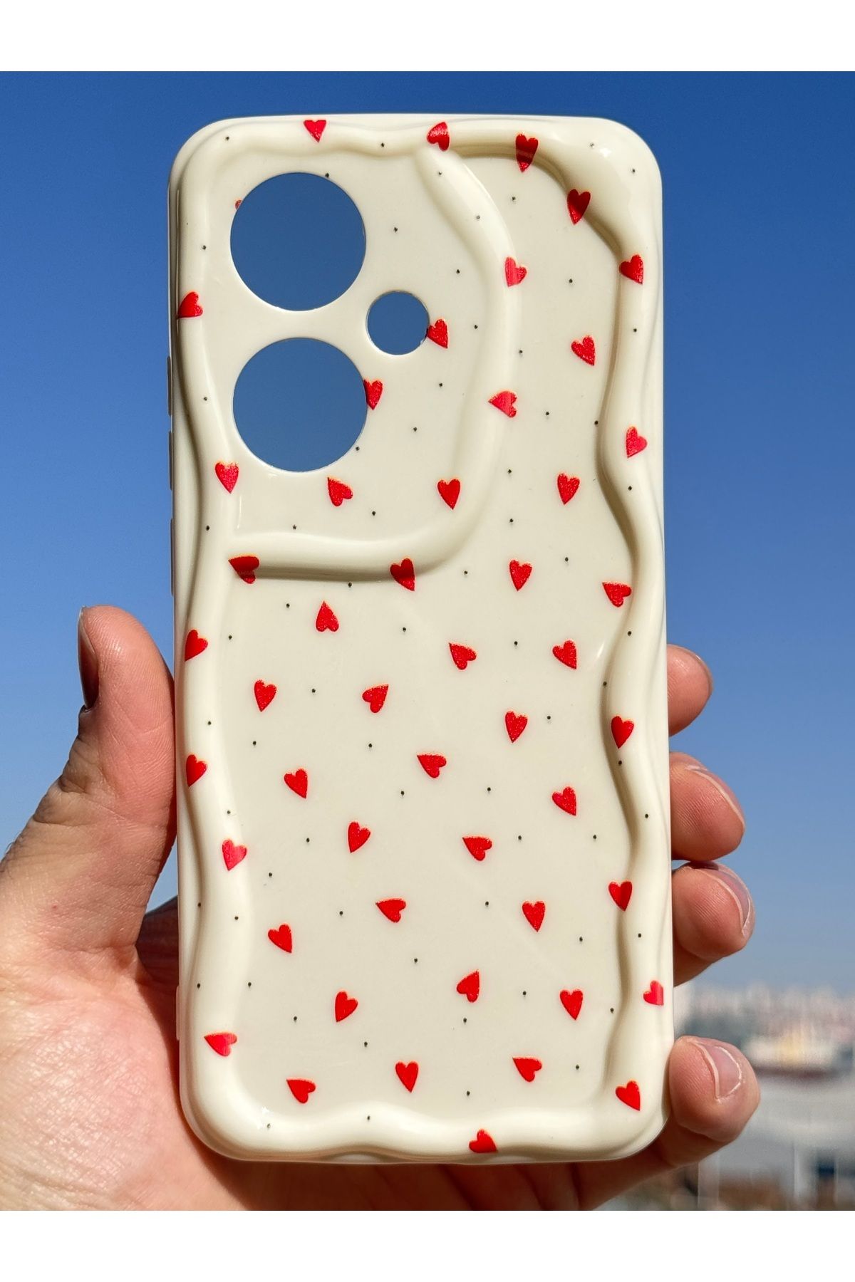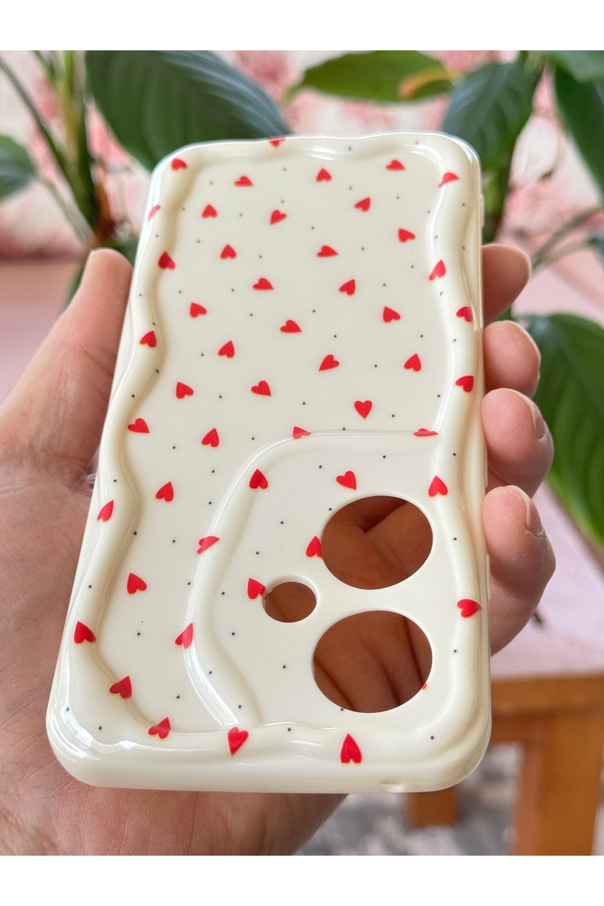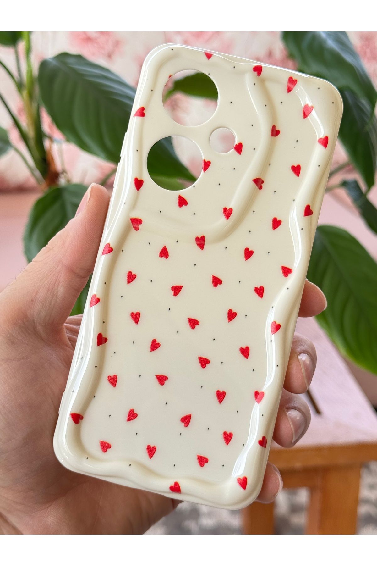 – Kamera bölgesini koruma altına alan dalga kenar tasarımının yanı sıra kalp deseniyle estetik bir dokunuş ekler.